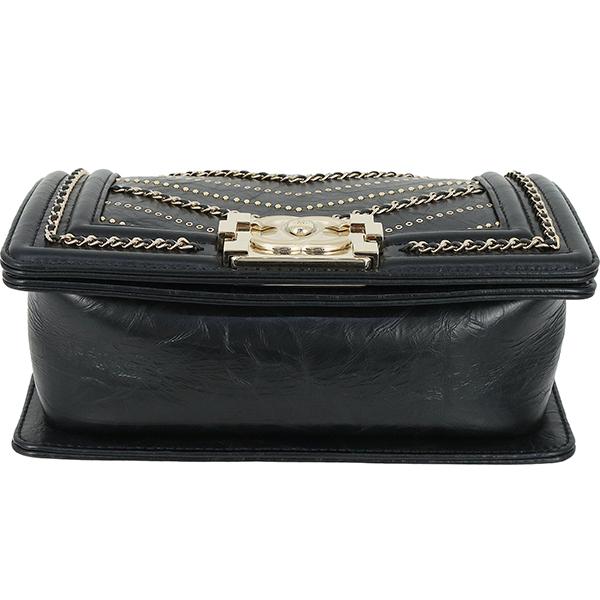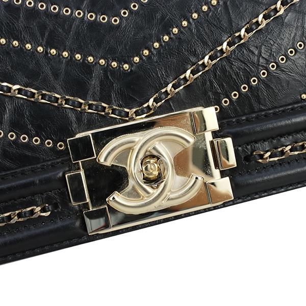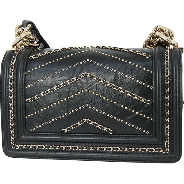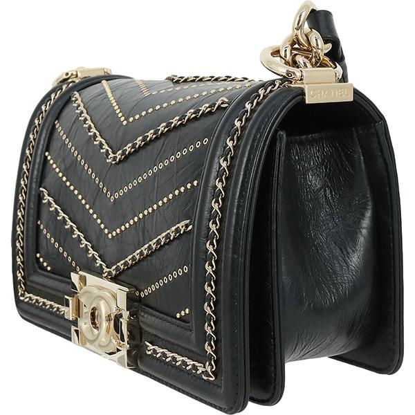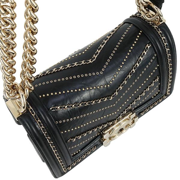 ------------------------【スタッフコメント】シャネル定番人気の【ボーイシャネル】のスモールハンドバッグが入荷。上質なレザーと、シェブロンモチーフのスタッズ、重厚感のあるメタルチェーンストラップがなどが印象的なダブルチェーンバッグは、普段使いやもちろん、パーティバッグに最適な逸品でございます。------------------------管理番号:h-AD970 wceウ I