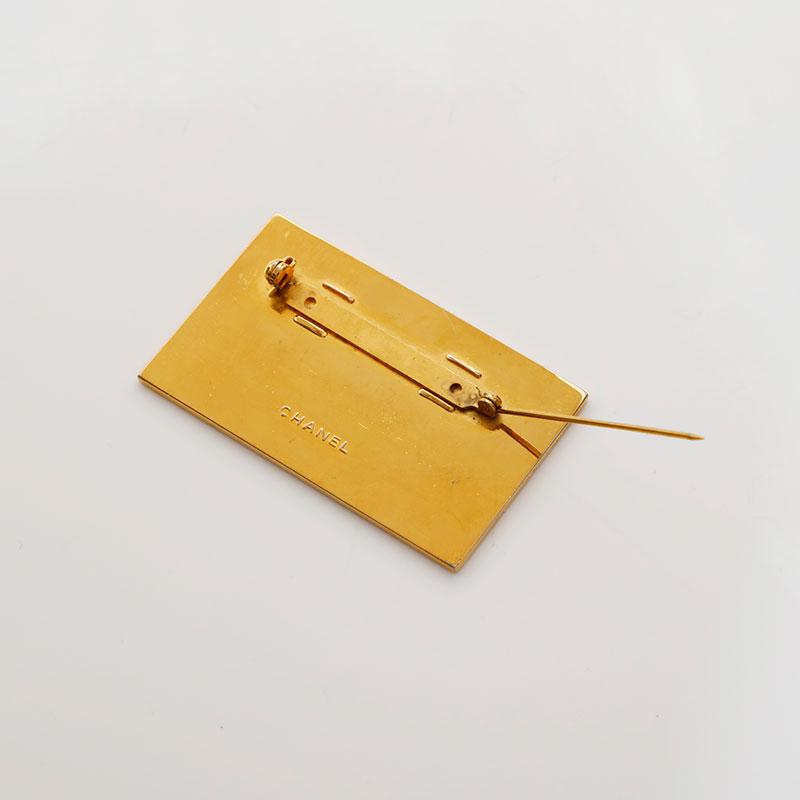 CHANEL Cambon logo plate brooch, gold, WS22368