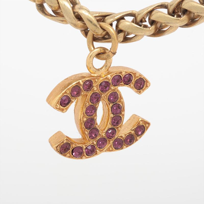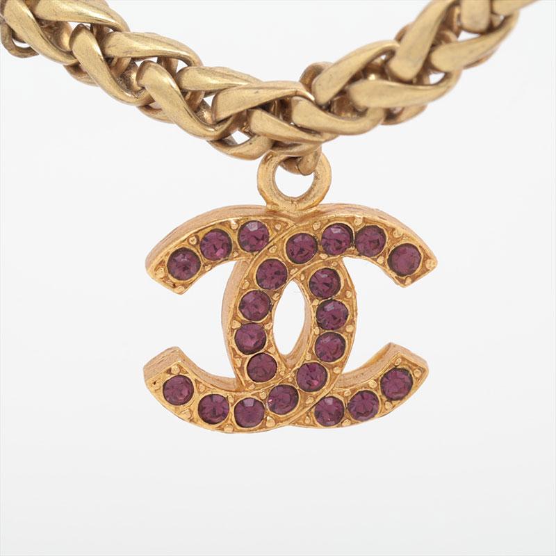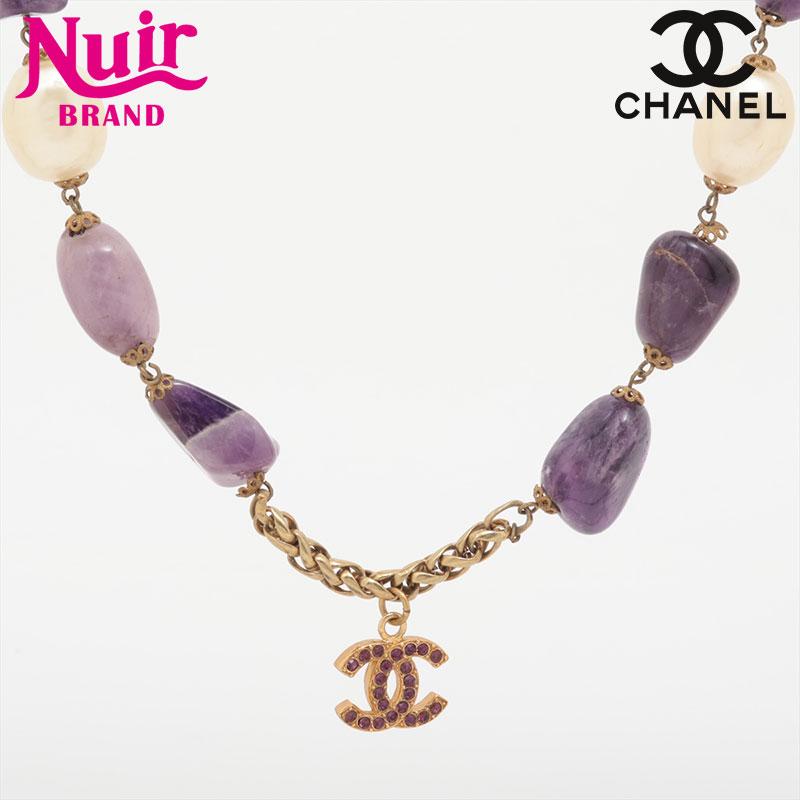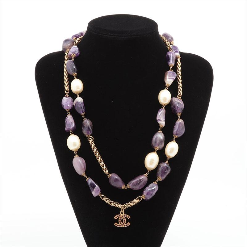 CHANEL 1970s-1980s Stone Long Coco Mark Necklace Purple WS15756