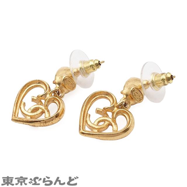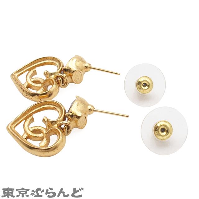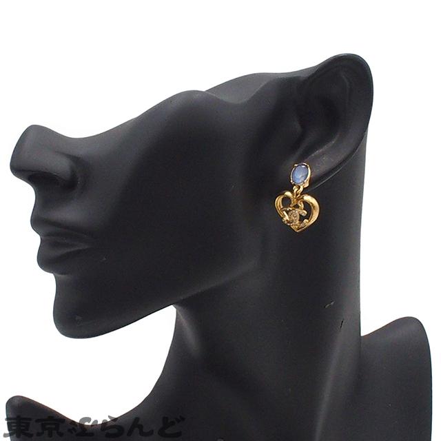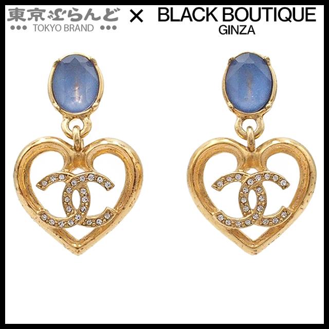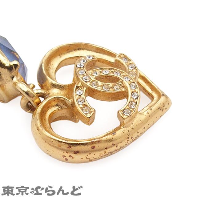 241 CHANEL Heart COCOmark Earrings, Gold and Blue Metal with Rhinestones, C23C, Women's