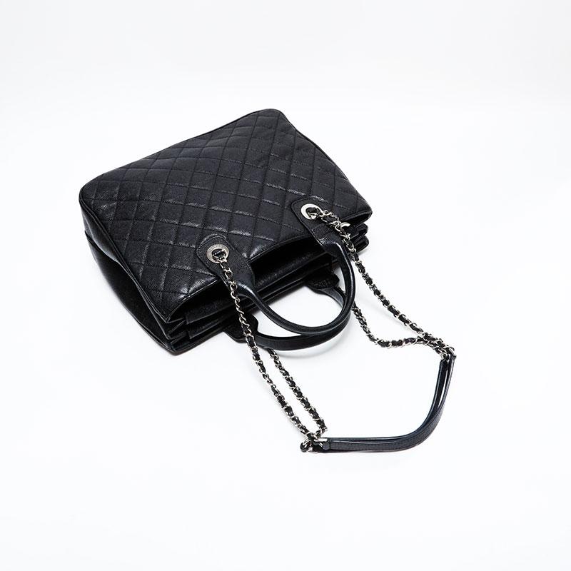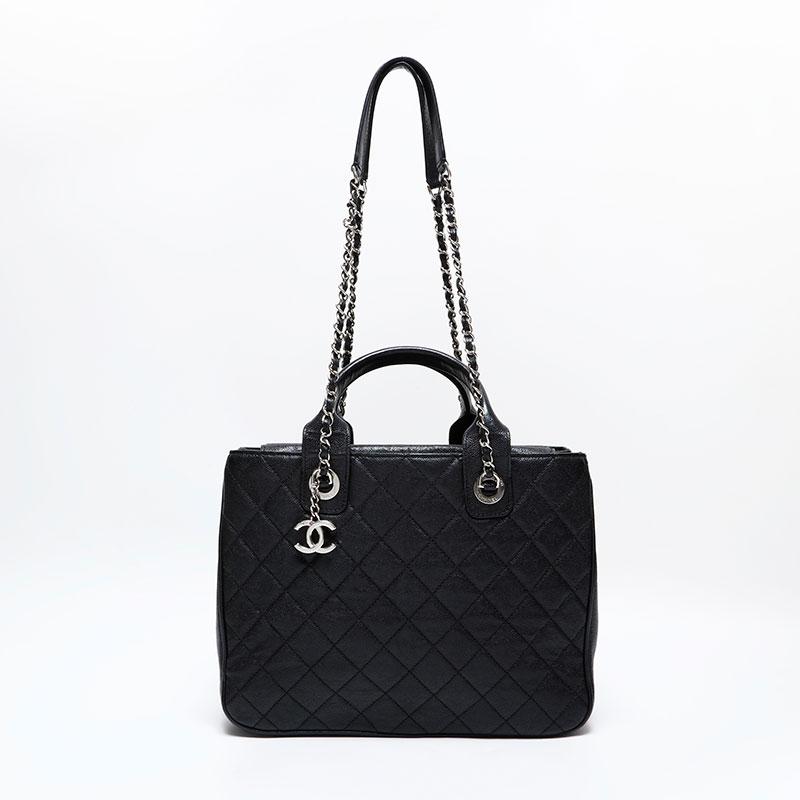 CHANEL 2018 Caviar Tote 2-Way Matelasse Shoulder Bag, Black, WS22726, 25 Series