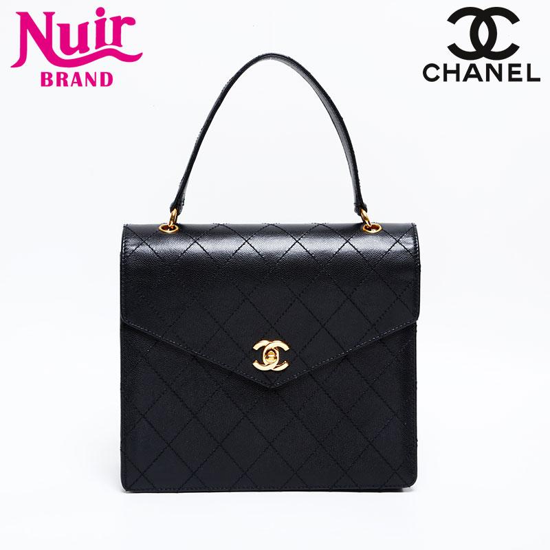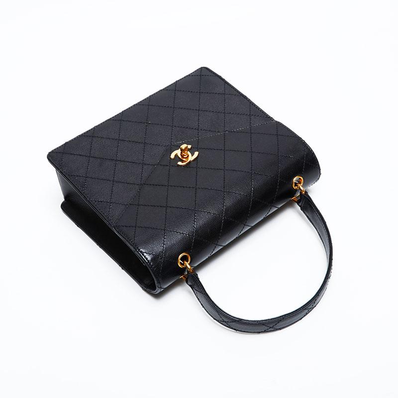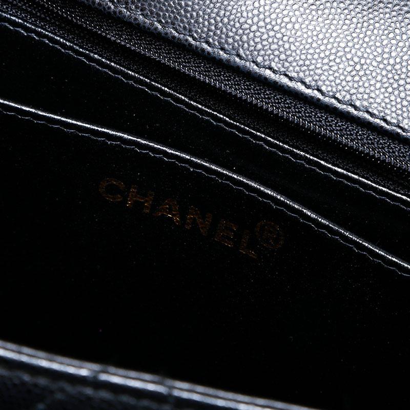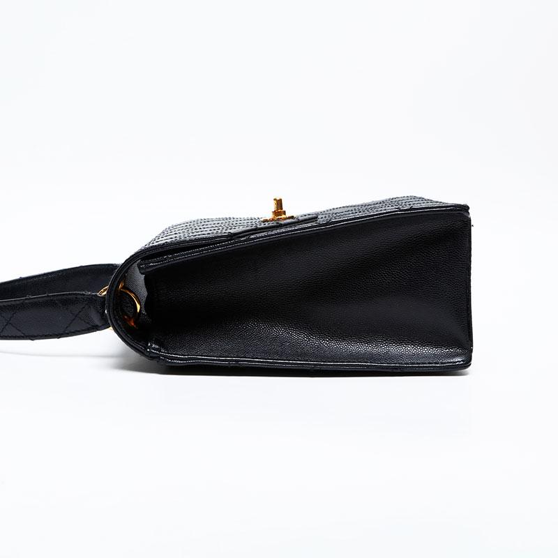 CHANEL No. 5 1997-1999 Caviar Kelly-Style Wild Stitch Top Handle Handbag in Black WS22041