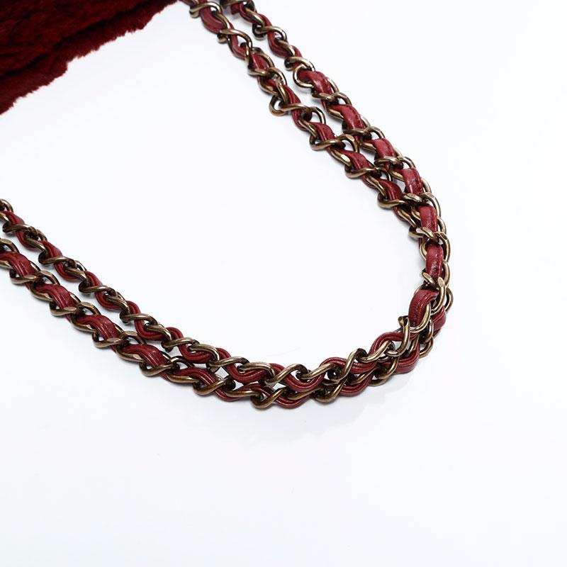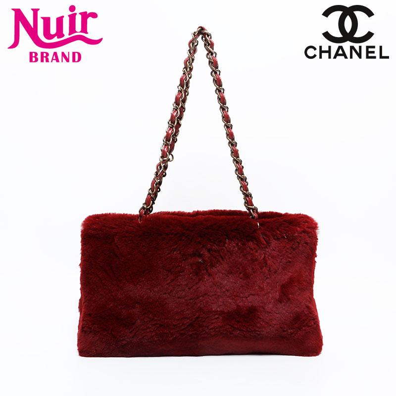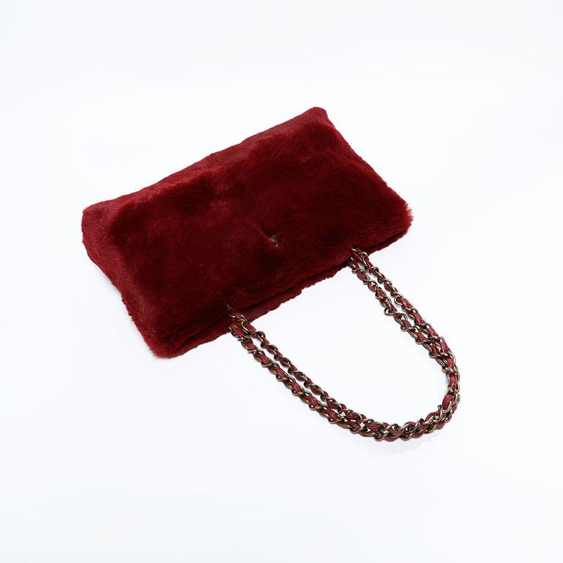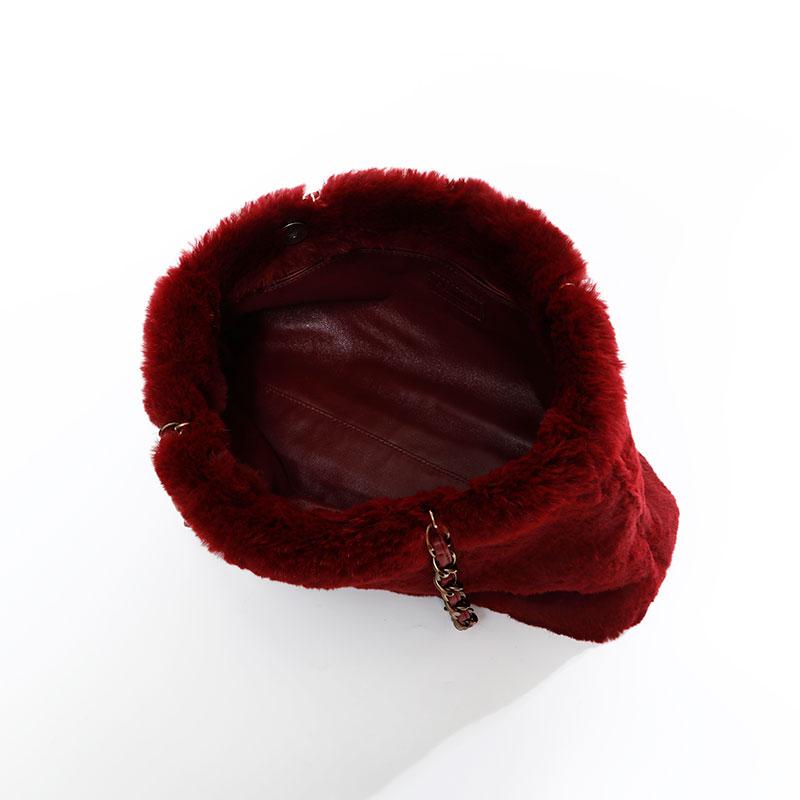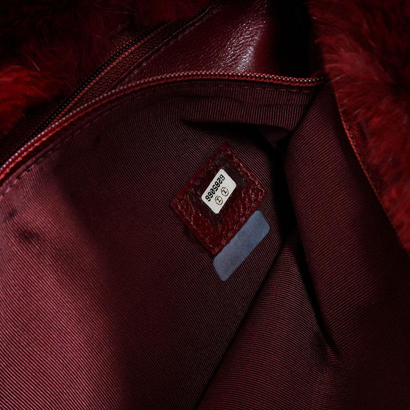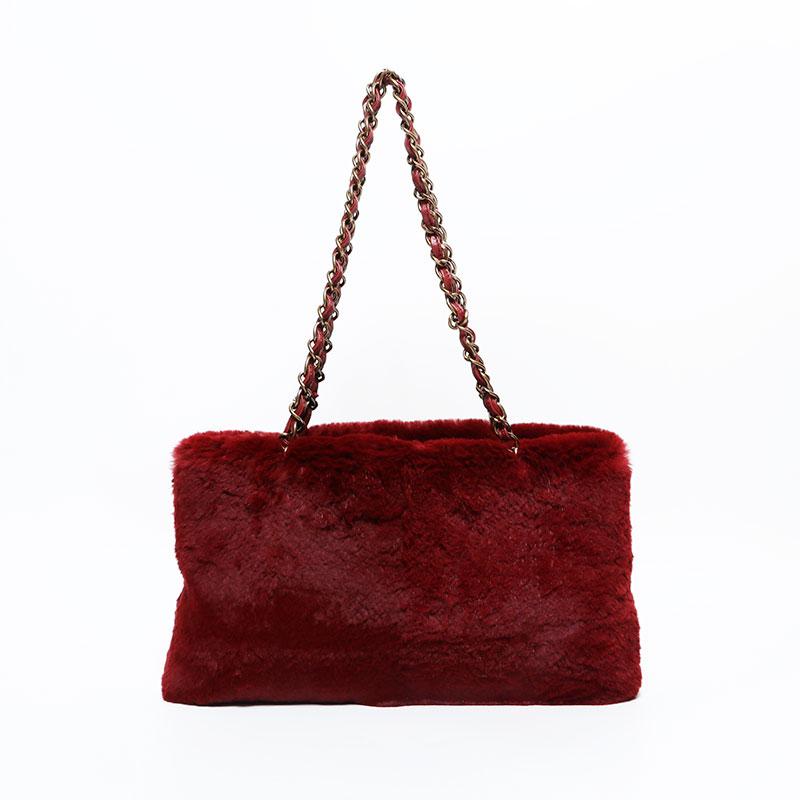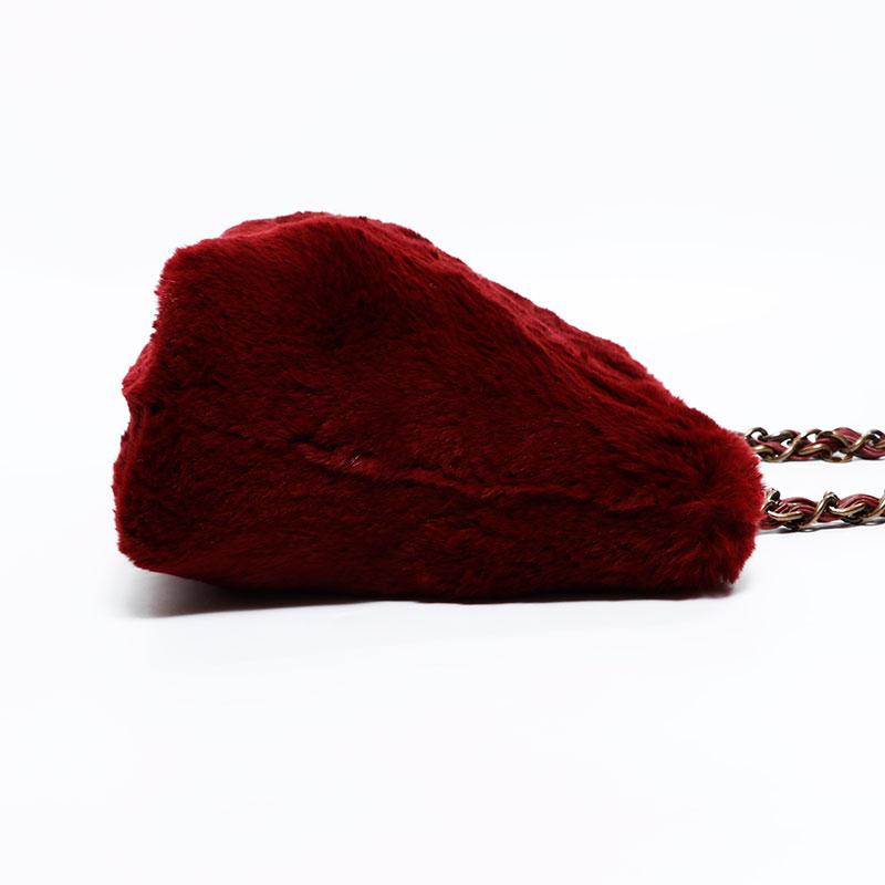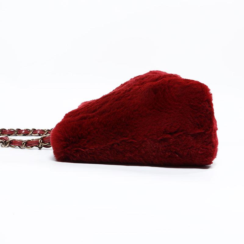 CHANEL 6th Series 2000-2002 Rabbit Fur Chain Shoulder Bag Red WS22665