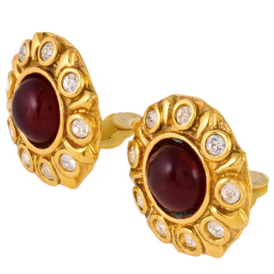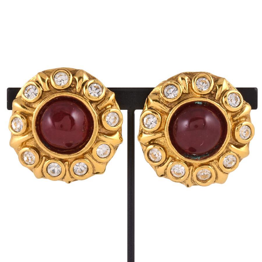 CHANEL Gripoa Round Earrings GP Red Color Stone Vintage Accessories Ladies++Brand Name Chanel CHANELProduct Name Gripoa EarringsColor RedHardware Color GoldMaterial GPColor StoneSize Diameter: Approx. 30mmWeight Approx. 30.8gNote *We cannot guarantee any changes in condition after purchase.*The color may vary slightly depending on your monitor.*The listed size may vary due to manual measurement.Rank Rating 5Condition Details Ear pads: Blackened, hardened, cracked due to agingMetal/Hardware parts: Fine scratches, discoloration, peeling plating, blue rustAccessories Main unit only*Nothing other than those listed is included*The condition of the accessories is not included in the rank rating