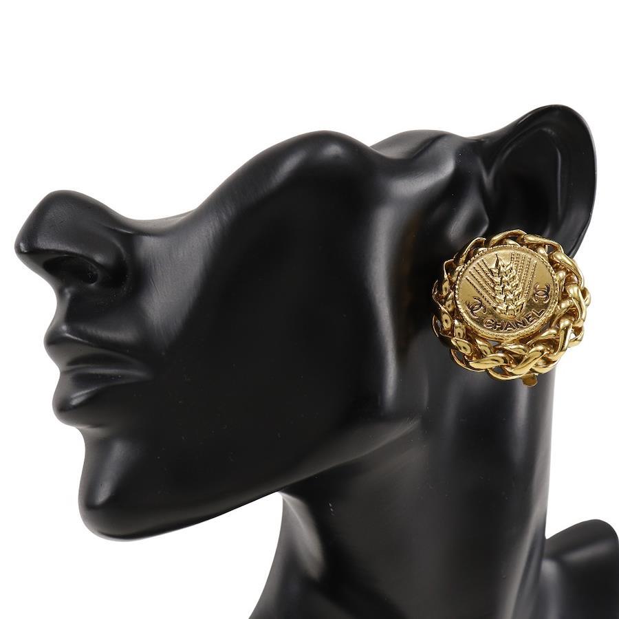 CHANEL Rice Motif Vintage Earrings, Gold Plated, Approx. 50.0g, Pre-owned, Women's