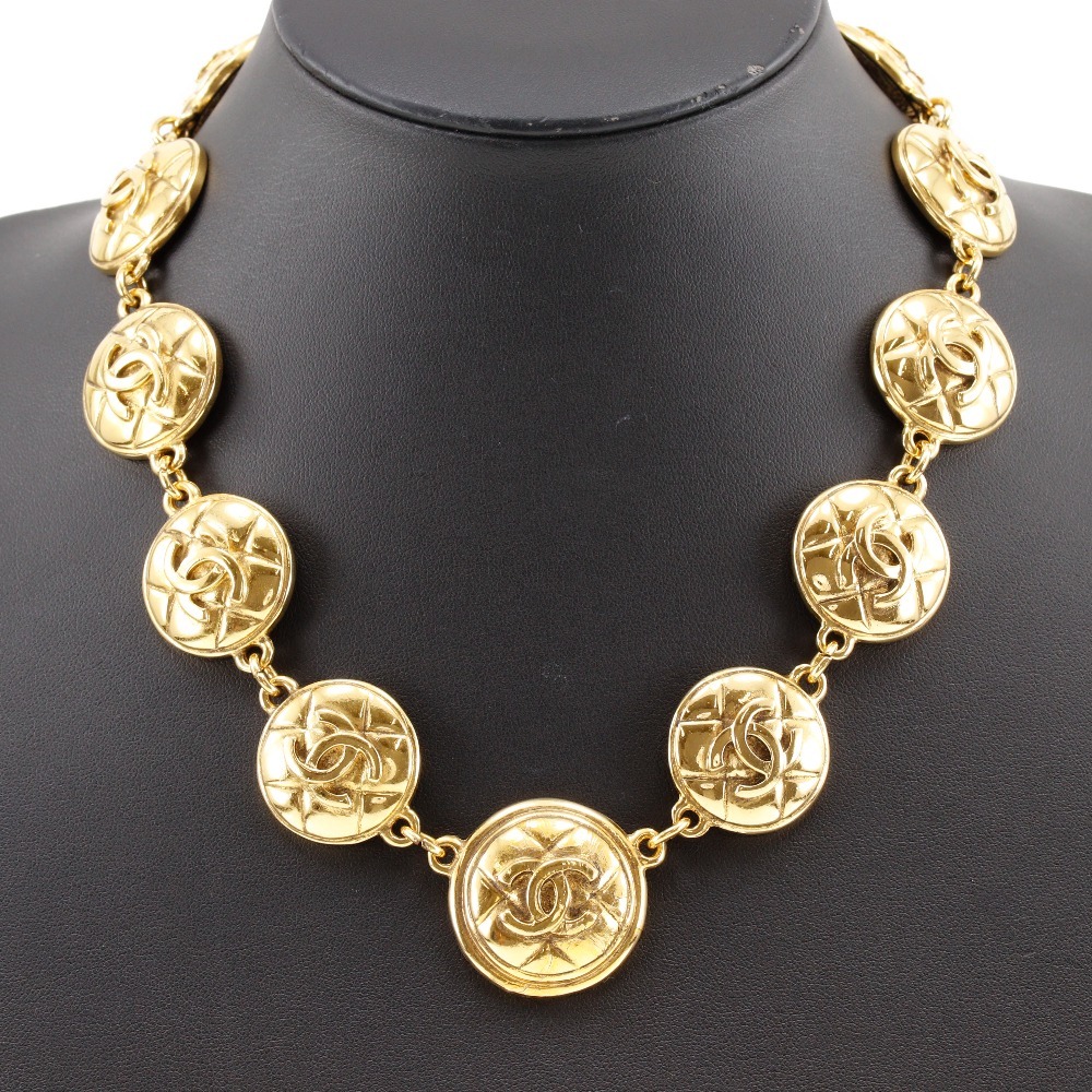 CHANEL COCOmark Matelasse Vintage Necklace, Gold Plated, Approx. 100g, Pre-owned, Women's