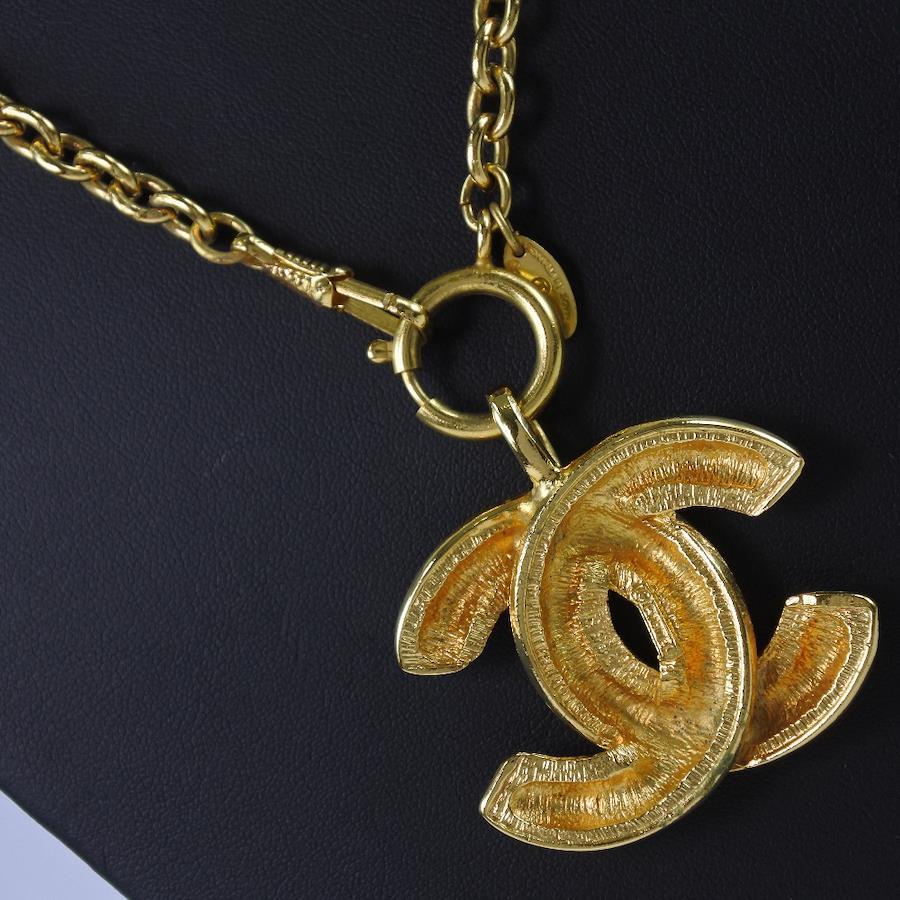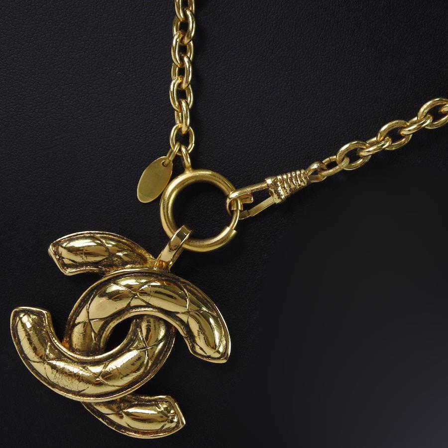 Brand: CHANELProduct Name: NecklaceModel Name: COCOmarkLine: MatelasseSeries: VintageSuitable for: WomenMaterial: Gold PlatedColor: GoldCountry of Origin: FranceWeight: Approx. 65.5gStamp: 3859Accessories: Dust BoxDimensions: Neck Circumference: Approx. 74.0cmTop: Approx. W46mm x H58mmCondition: Rank BMetal: TarnishedNotes: Please feel free to contact us if you have any questions about the condition of the item.*The condition of the item is indicated according to our company's standards.