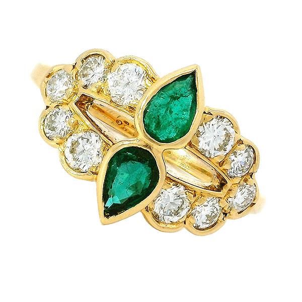 Chaumet Emerald and Diamond Ring, 18K Yellow Gold, Size 9