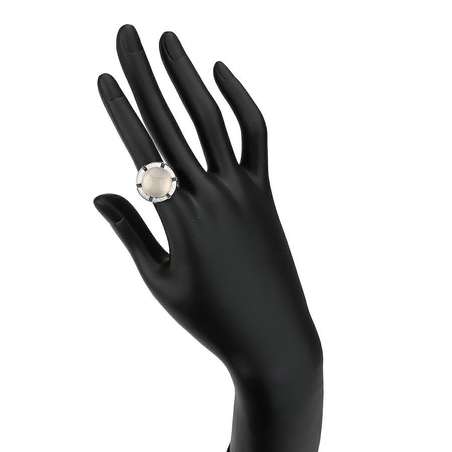 Popular, coveted, high-end jeweler, high-end brand, class one, voluminous, gorgeous, white gold, April/June birthstone, cabochon, 18k gold, for people in their 20s, 30s, 40s, 50s, 60s, and 70s, used, pre-owned, reused ring.