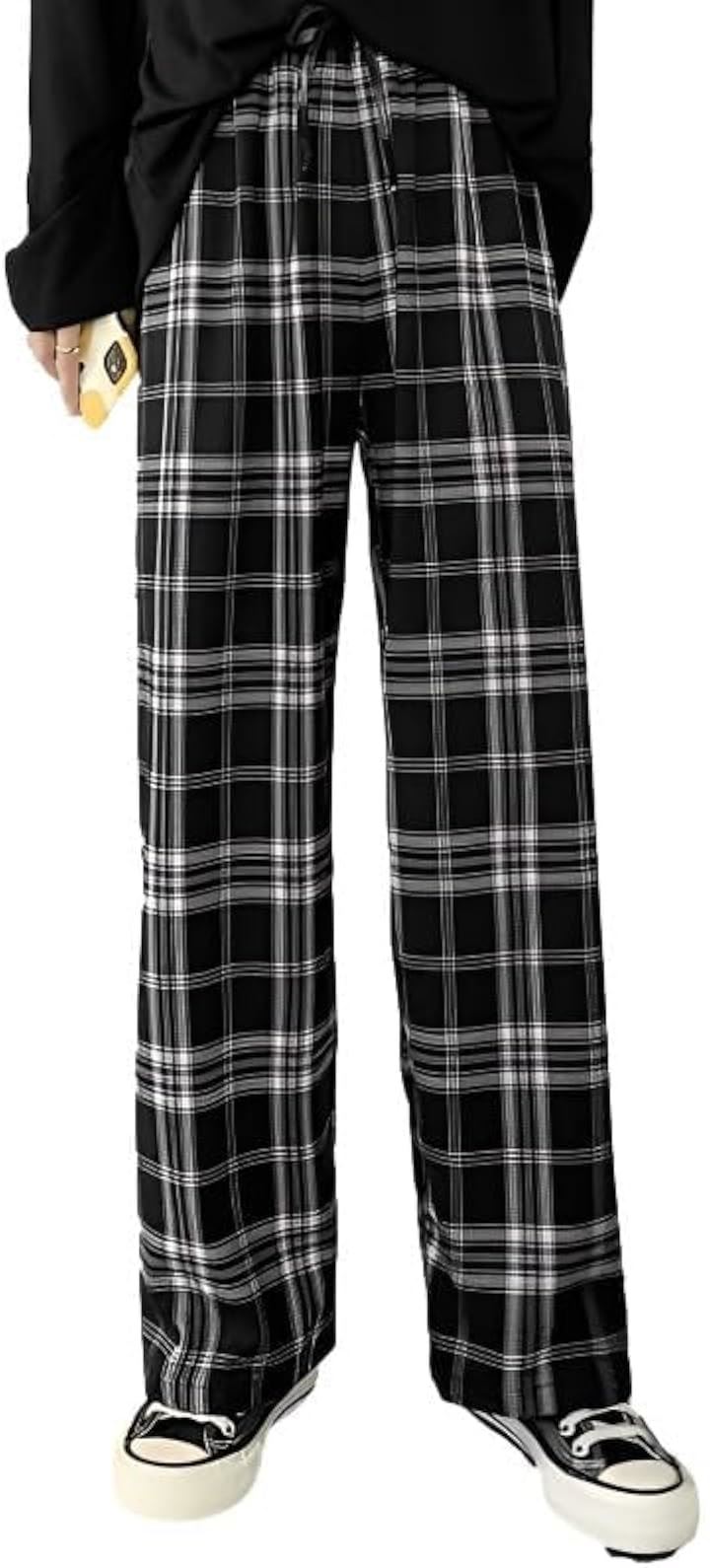秋冬らしいシックな色合いのチェック柄のパンツ。