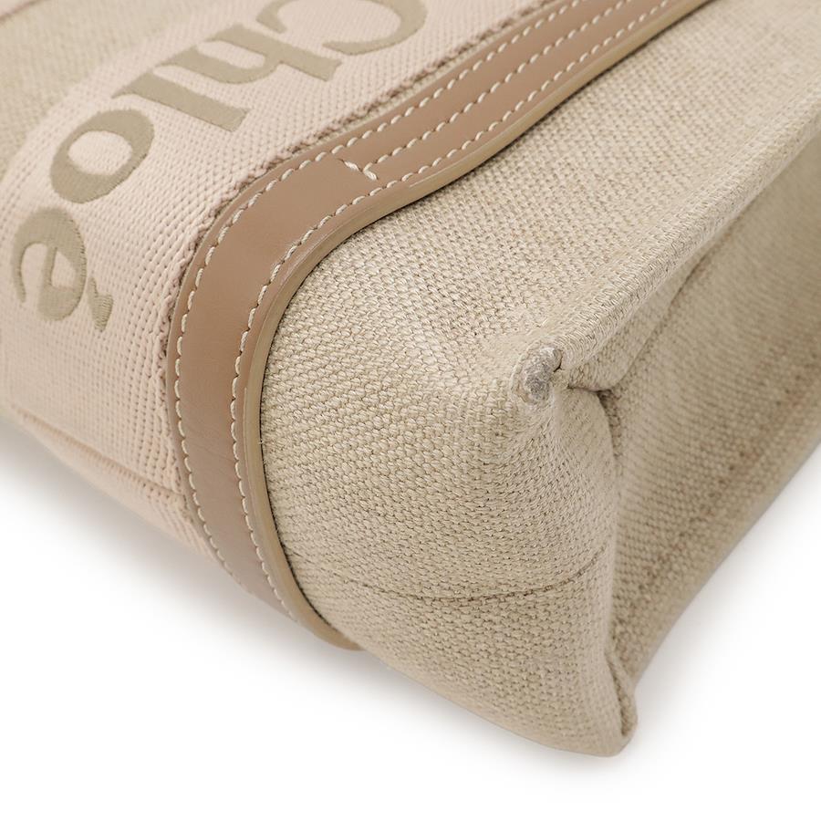 Chloe Woody Small Handbag, 2-Way Shoulder Bag, Canvas and Leather, Beige, Pink, Brown, CHC22AS397I26