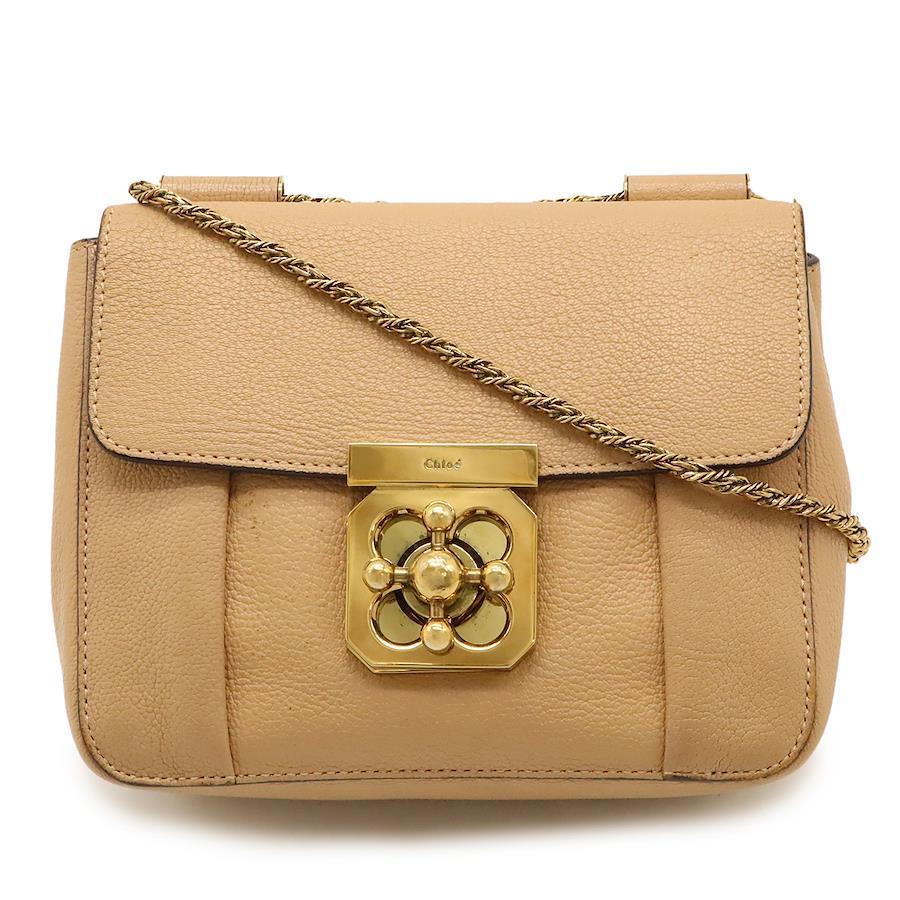 Chloe Elsie chain shoulder bag, pochette, crossbody, leather, pink beige, gold hardware