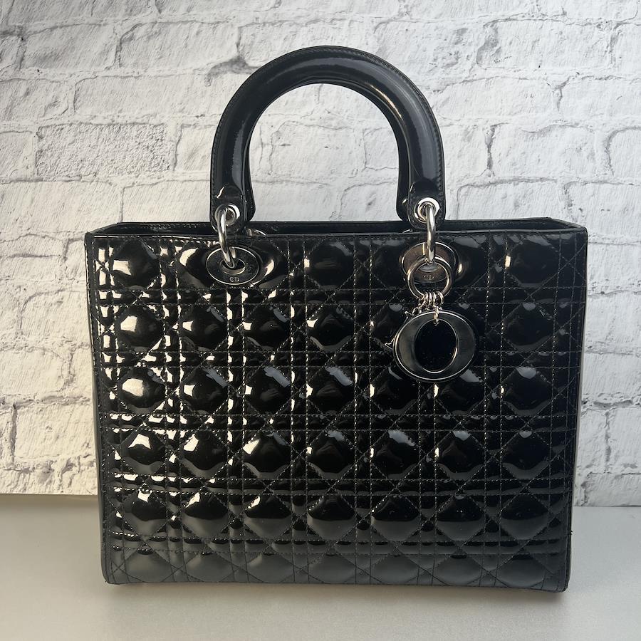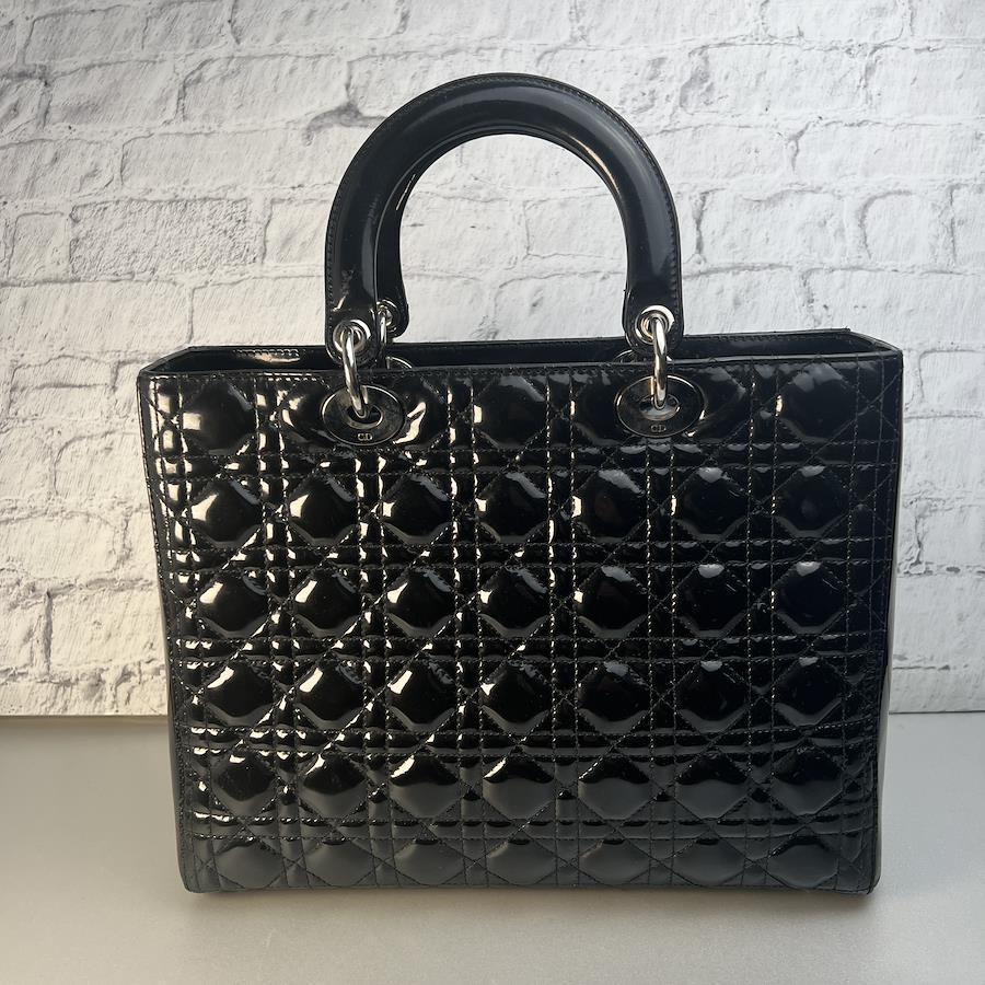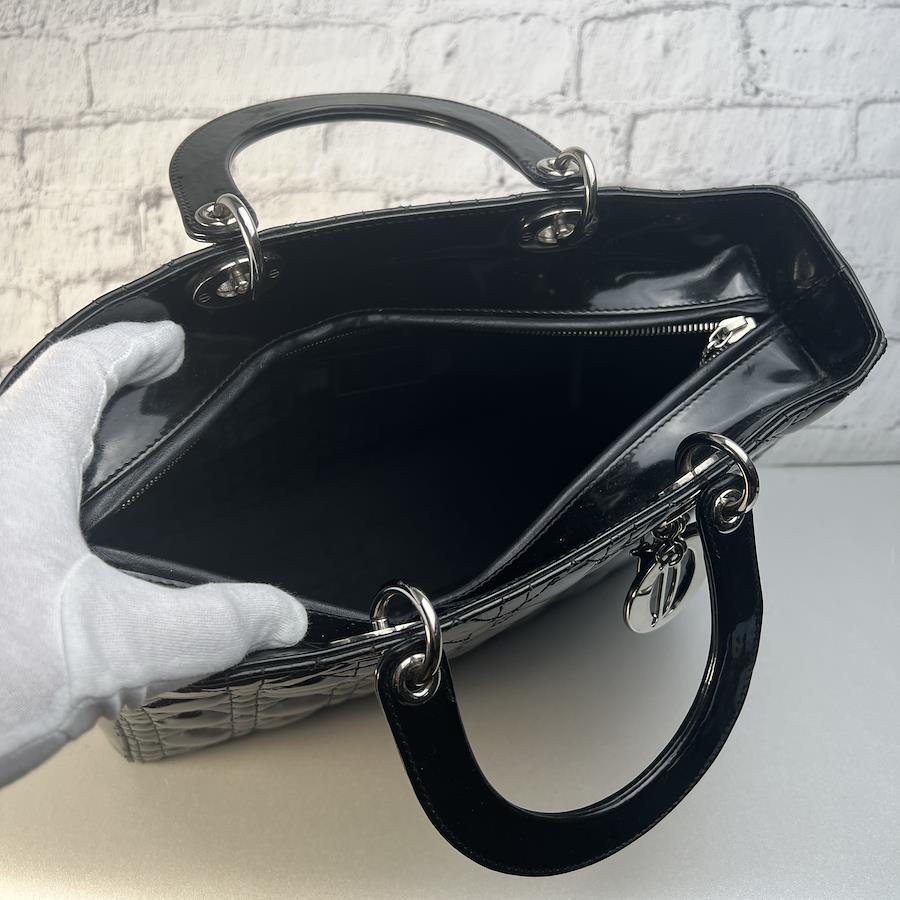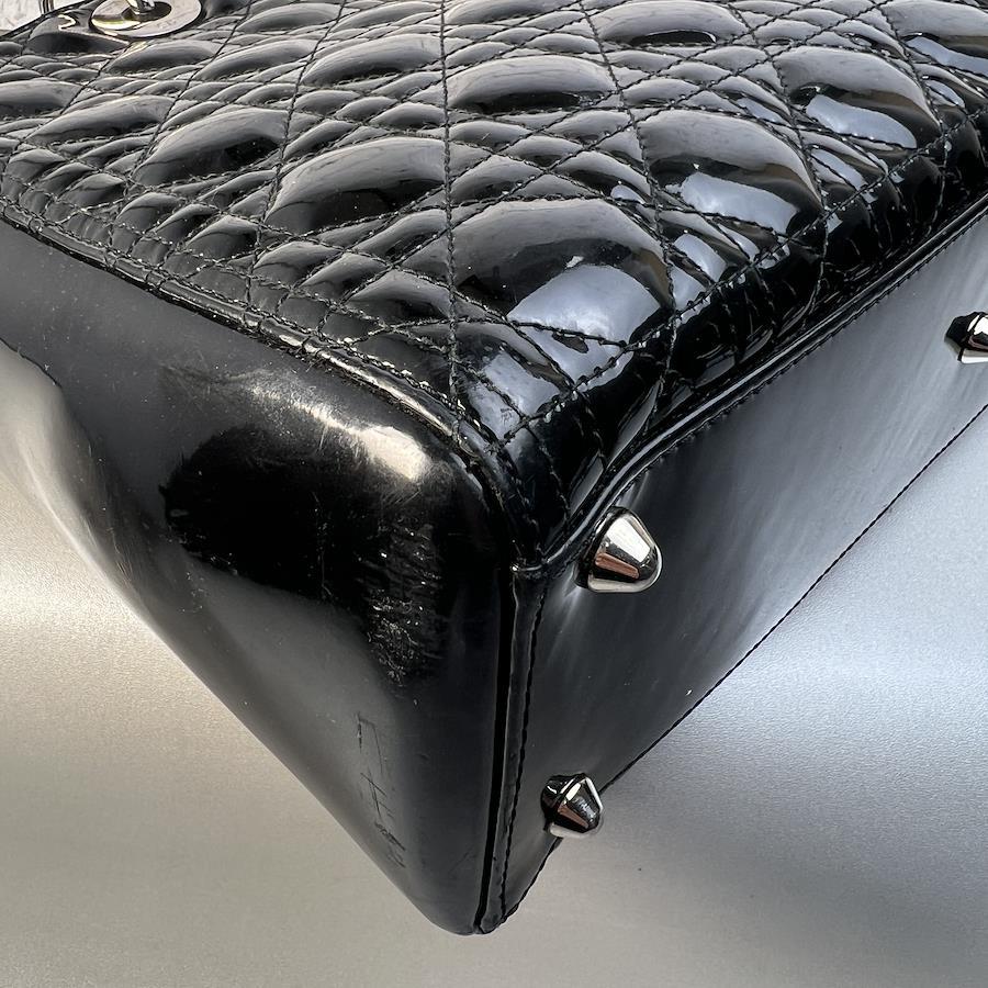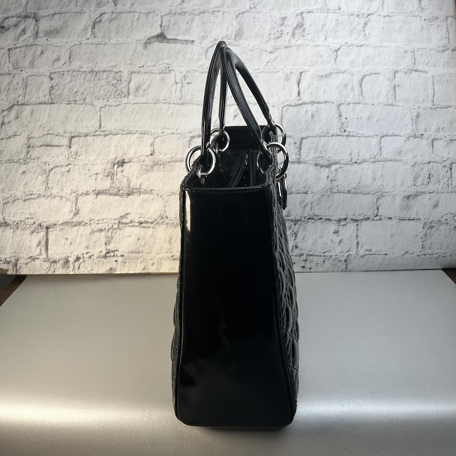 【アイテム】良品 カナージュ Christian Dior2WAY エナメル/パテントレザー ショルダーバッグ ブラック A-10018