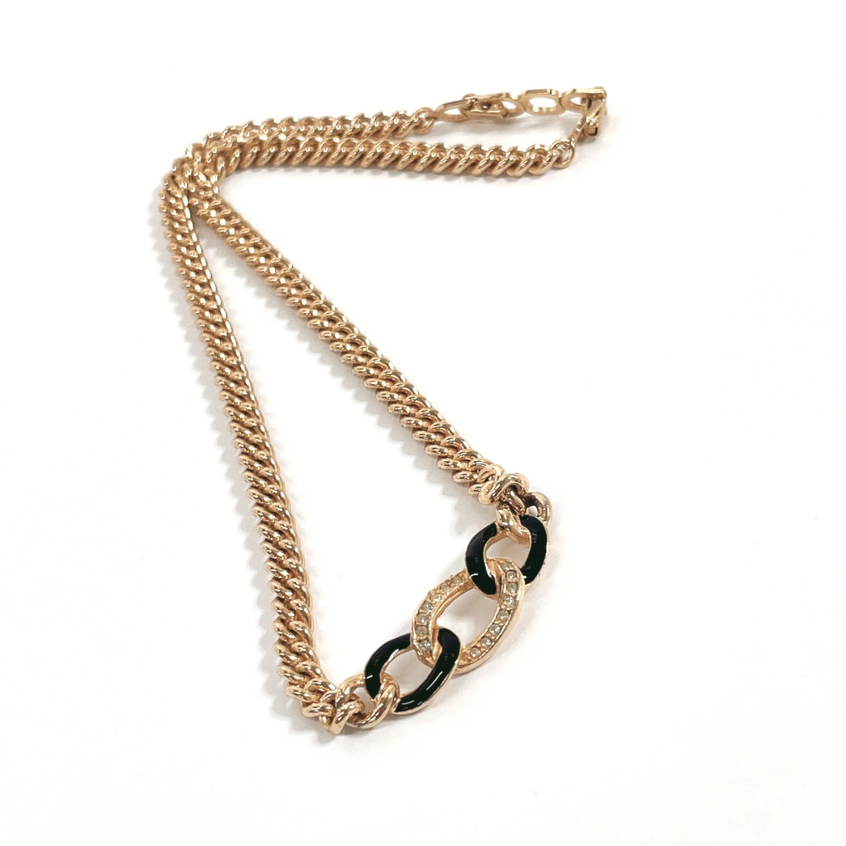 Christian Dior Necklace, Metal/Rhinestone, Gold, Pre-owned, Women's