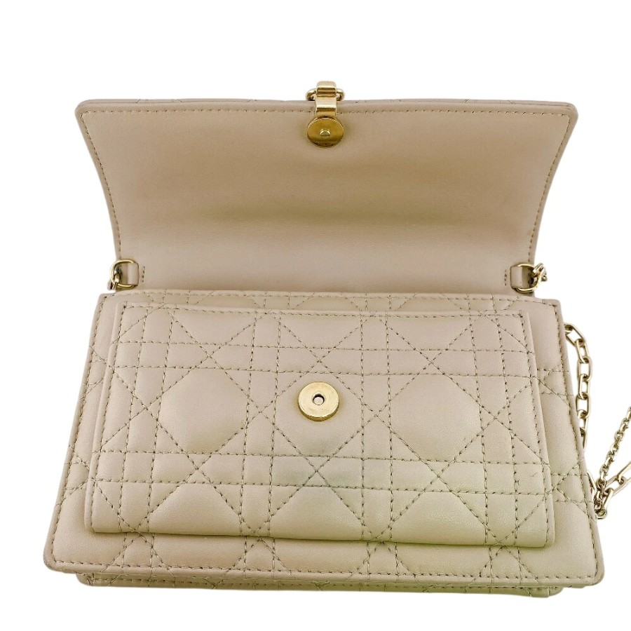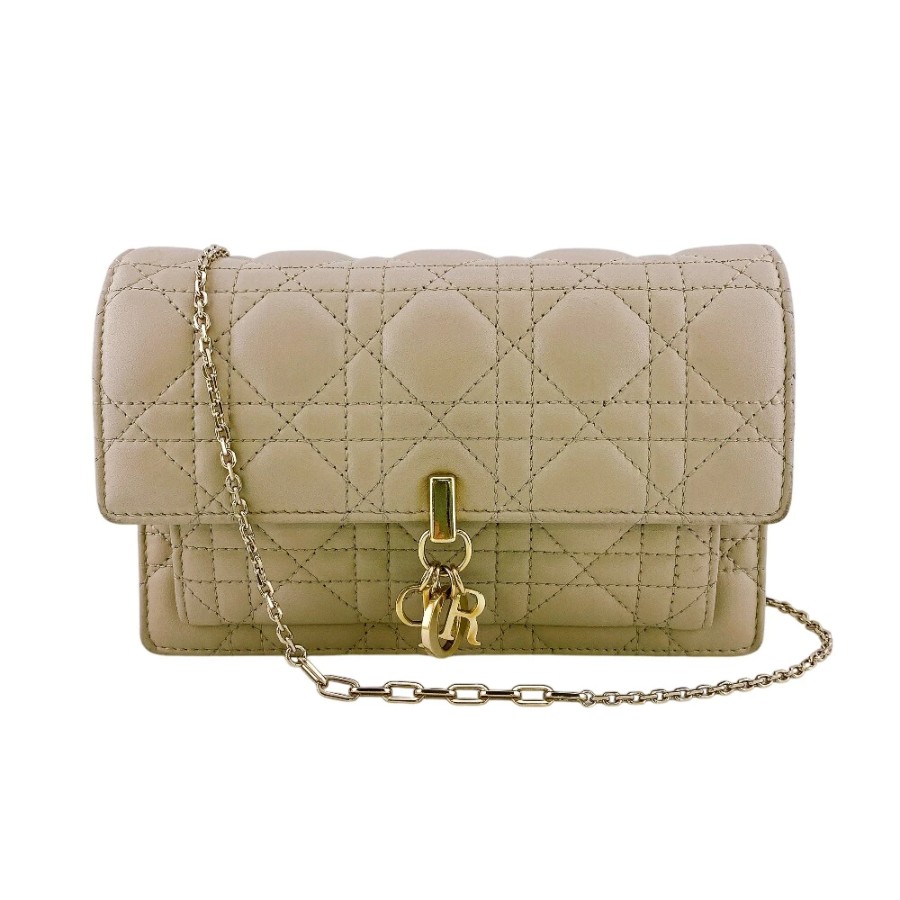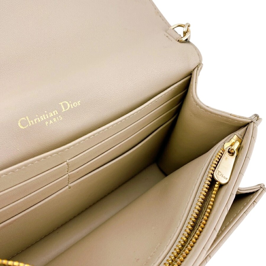 Christian Dior Lady Dior Logo Wallet Chain, Beige