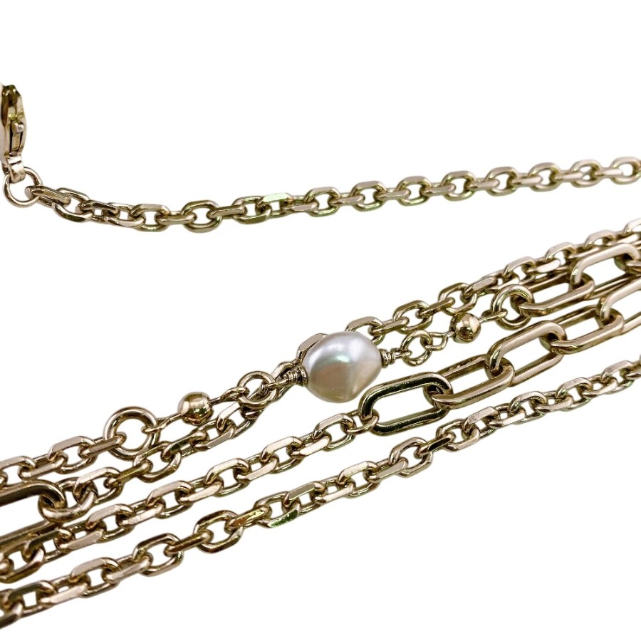 チェーンが切れてしまいバッグ修理店にて修理していただきました。その際に片方のパールが欠損しておりますがご使用には問題ございません。