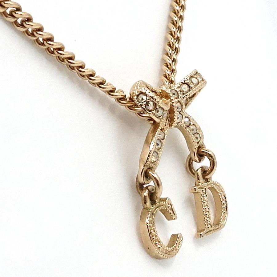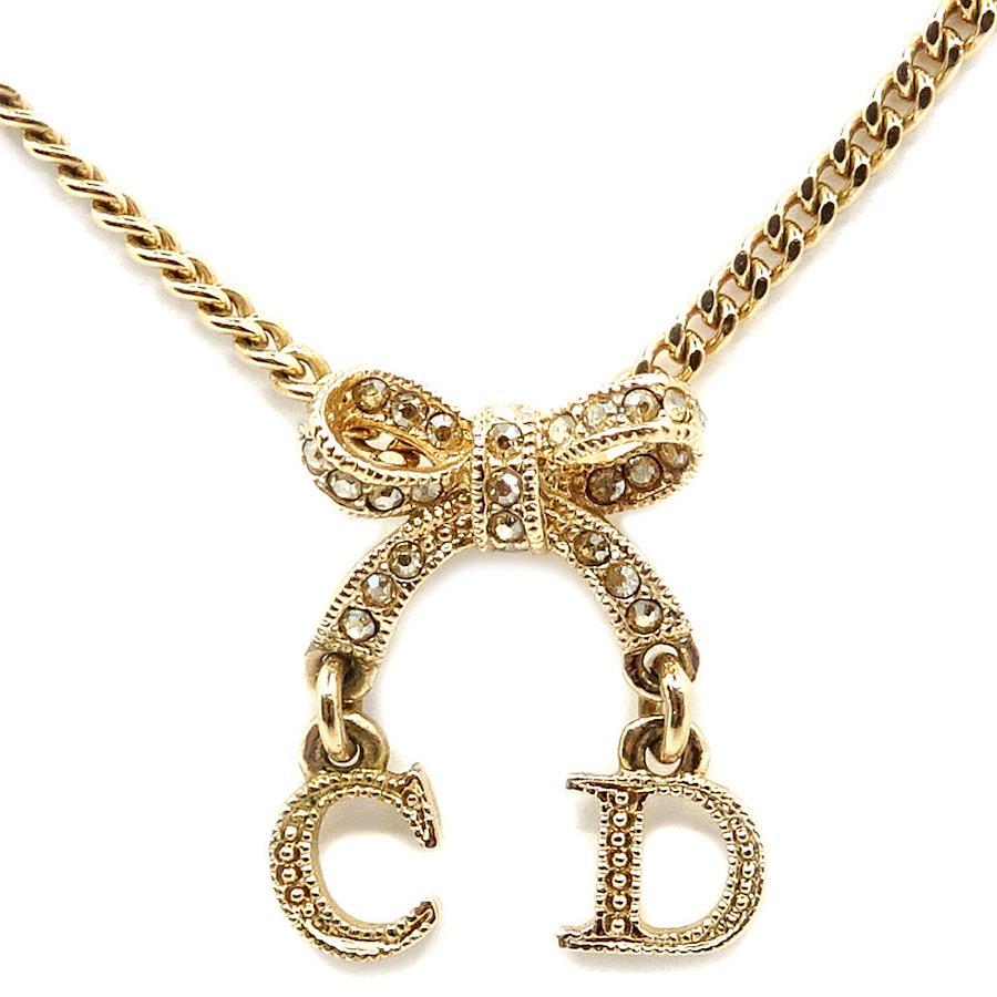 Dior Ribbon Metal Necklace with GP and PG Rhinestones, Women's Accessories