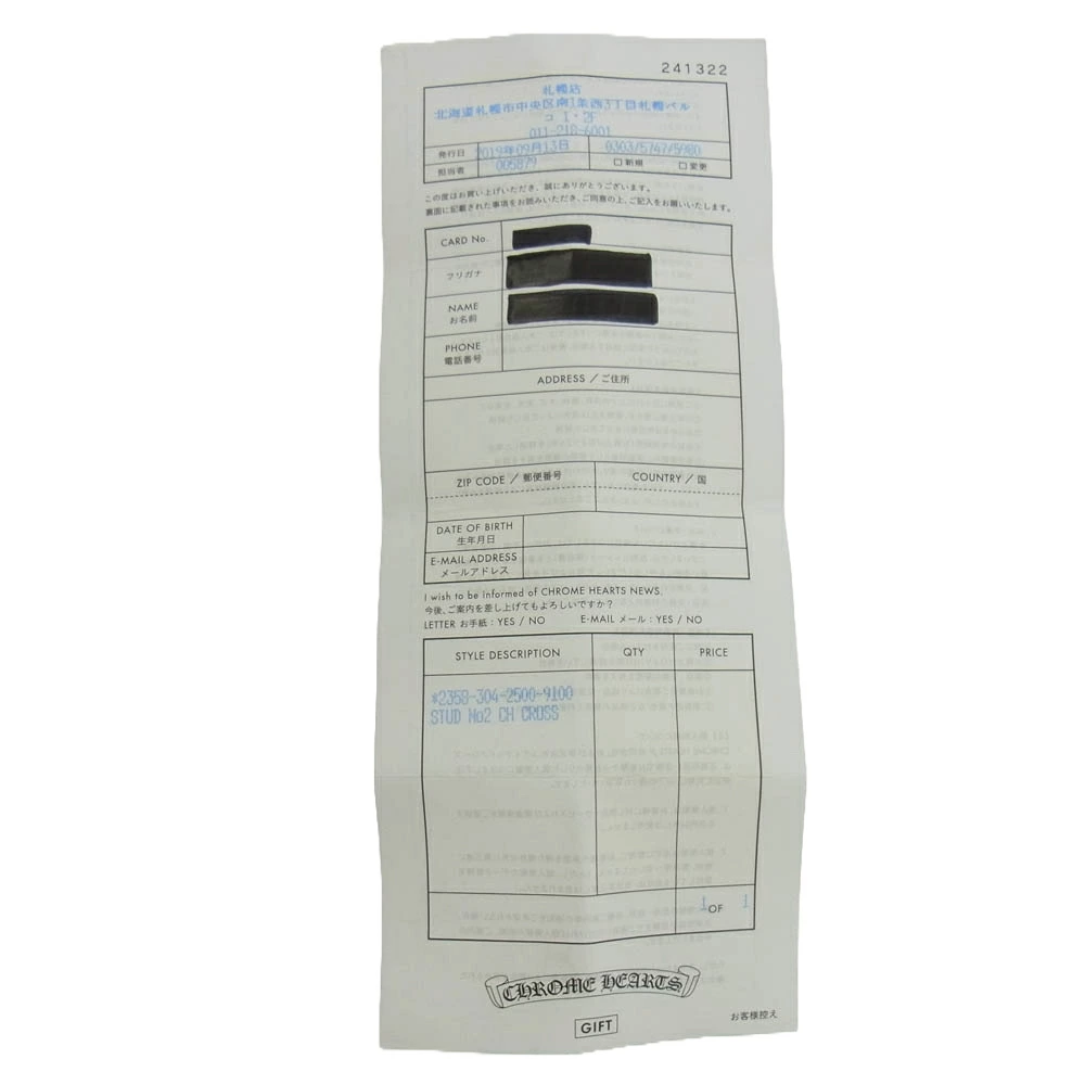 | 特記事項 | ※商品の特性上返品交換の出来ないお品となっておりますのでご了承の上でご検討下さい。 ※インボイスの個人情報、CARDナンバーの表示されている箇所につきましては個人情報保護の観点から黒塗りで削除させて頂いております。予めご理解の上でご購入下さい。 ※シルバー製品特有の使用感、傷、スレ、くすみ、燻などはございます。中古商材にご不安な方、完璧な商品状態をお求めの方はお控え下さい。 ※重量:0.83g |