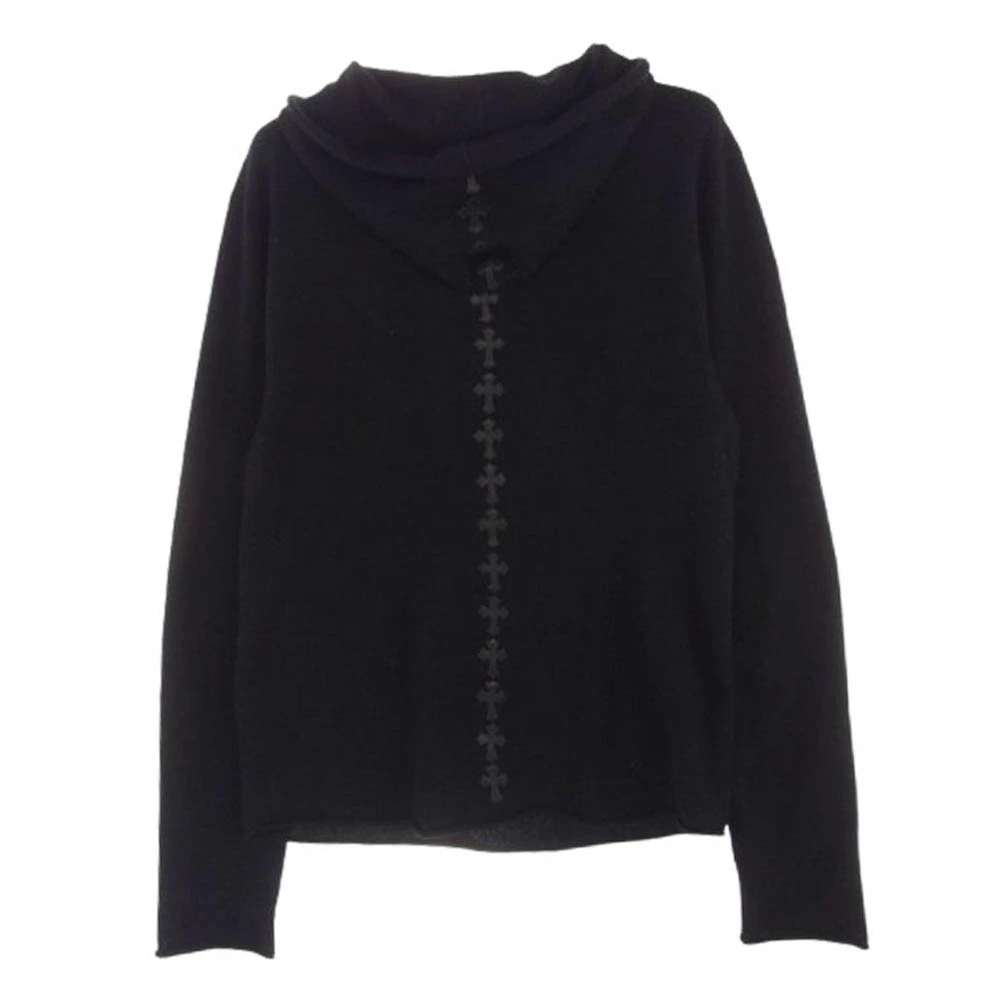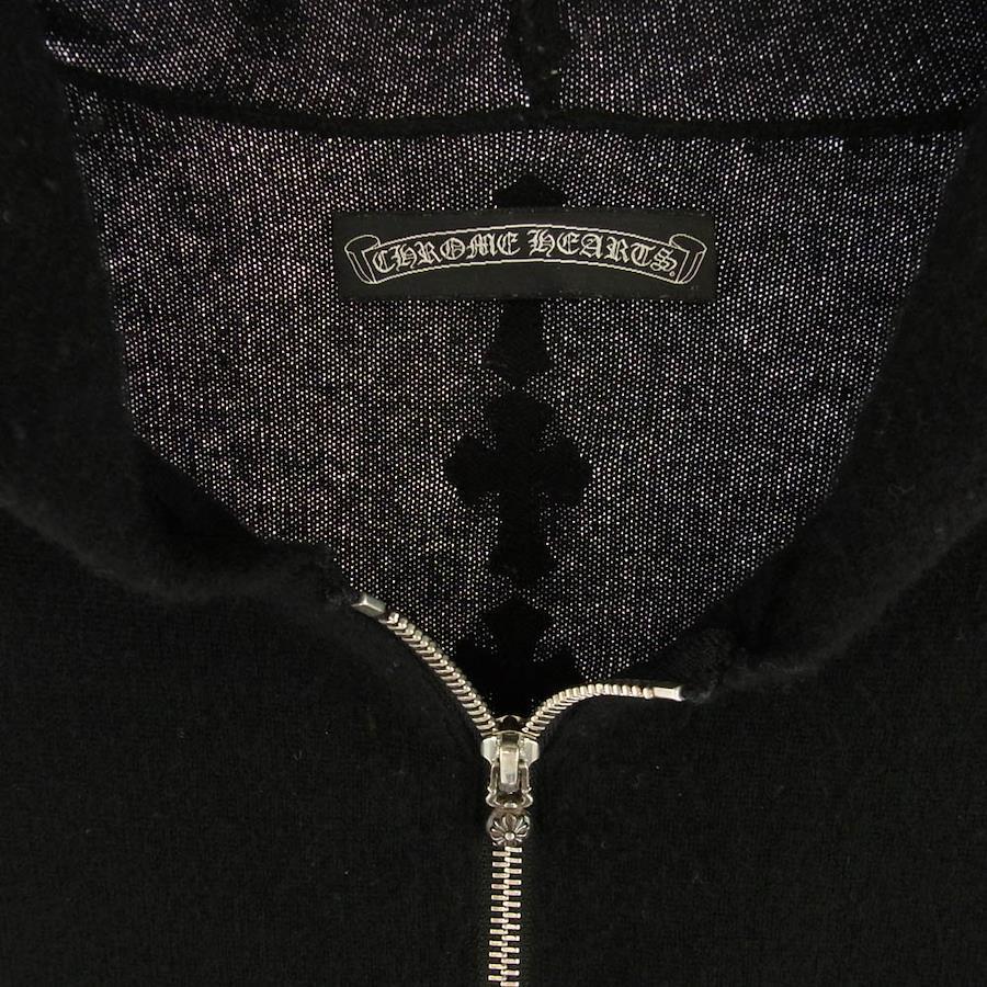 CHROME HEARTS (original missing) 100% cashmere cross ball zip hoodie with leather cross patch detailing on the back. Men's. [Used]