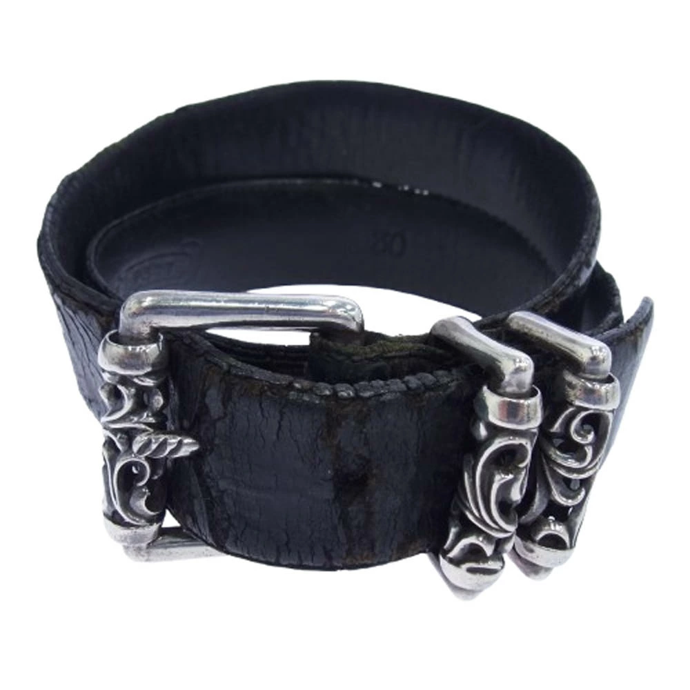 CHROME HEARTS (original missing) 3PC ROLLER 1.5 3PC Roller Buckle Leather Belt, 30 inches, Black, Size 30, Men's [Pre-owned]