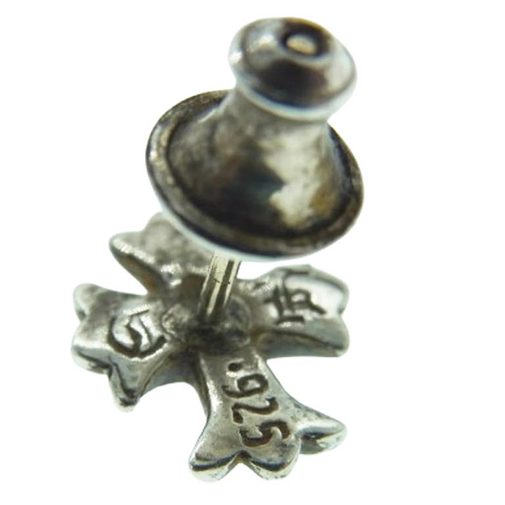 Pre-owned CHROME HEARTS No. 2 CH CRS CH CH Cross Stud Earrings, Silver, Men's (No Original)