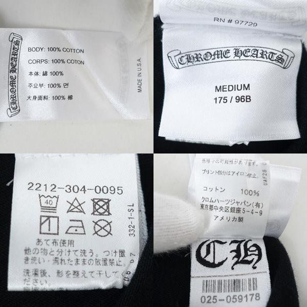 ・メーカー :CHROME HEARTS / クロムハーツ・製品型番 :2212-304-0095・サイズ :表記サイズ:M,肩幅 (約cm):44,身幅 (約cm):47,着丈 (約cm):70,袖丈 (約cm):22,・色(柄)の系統:ブラック・デザイン :(メンズ)トップス/Tシャツ・素材 :綿100%