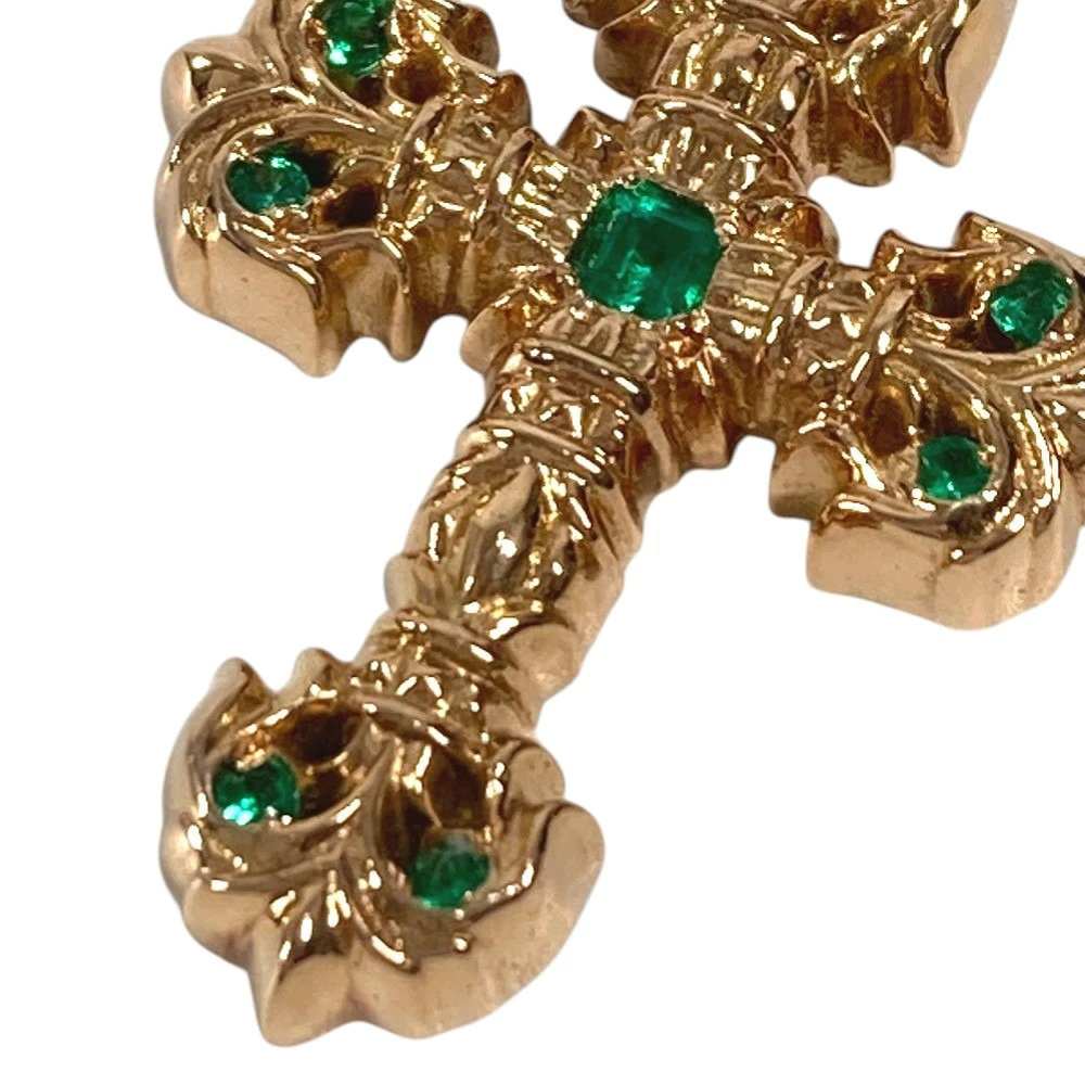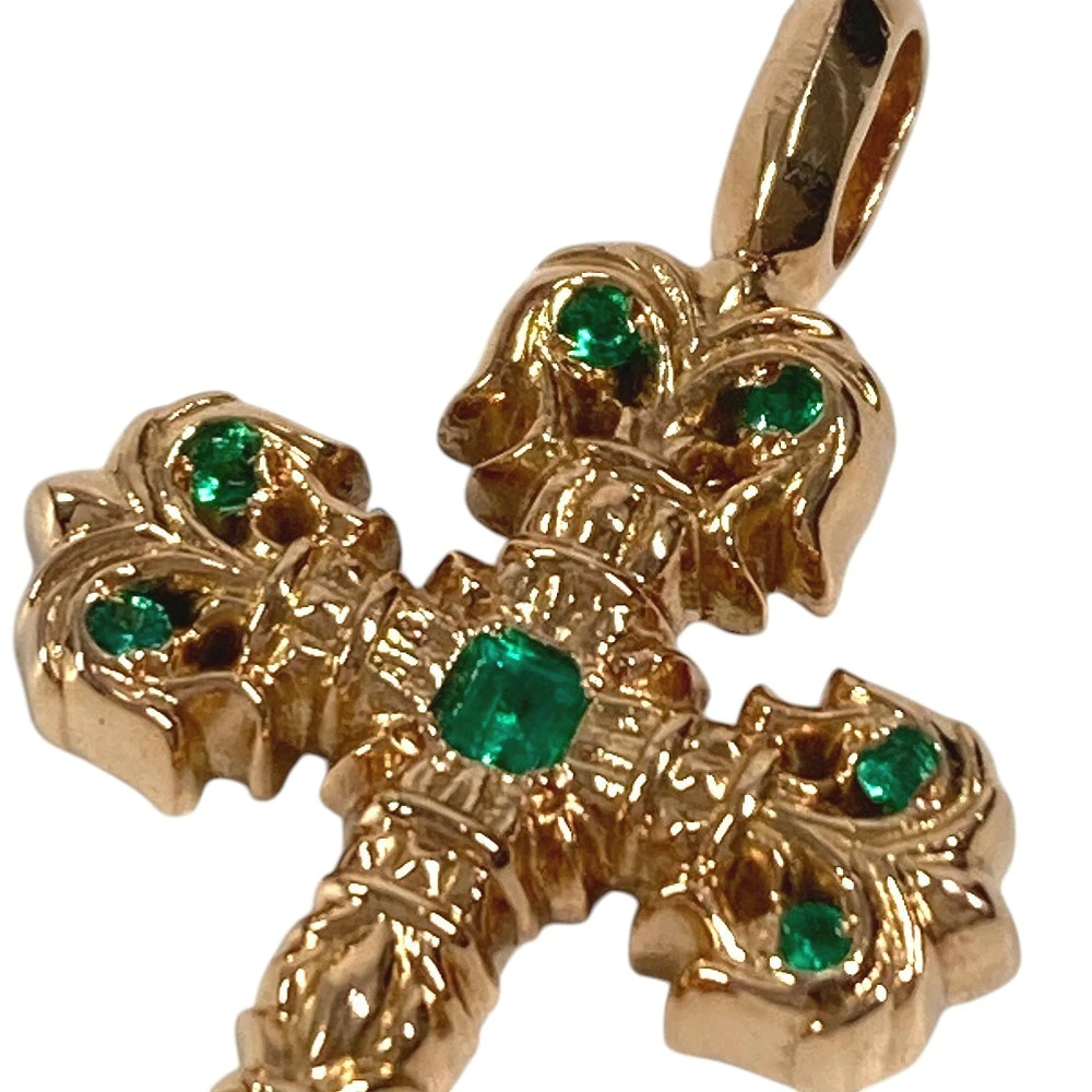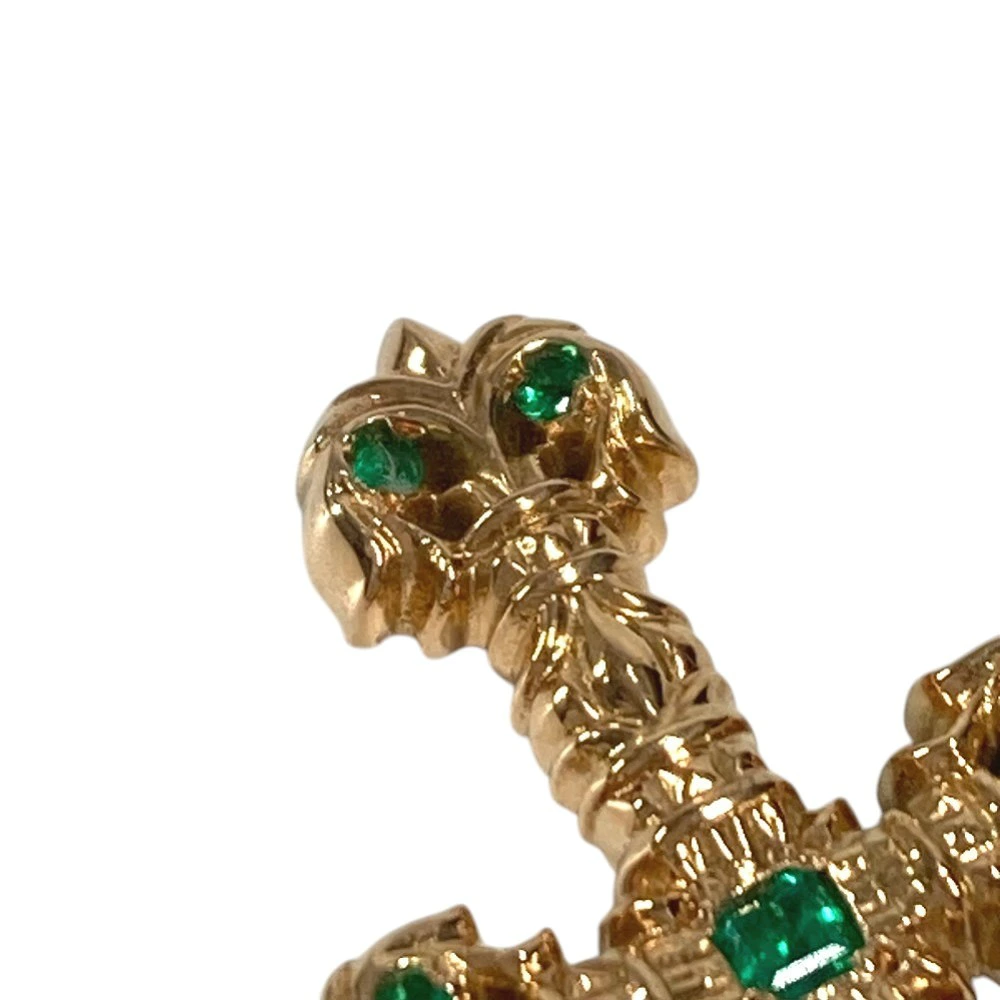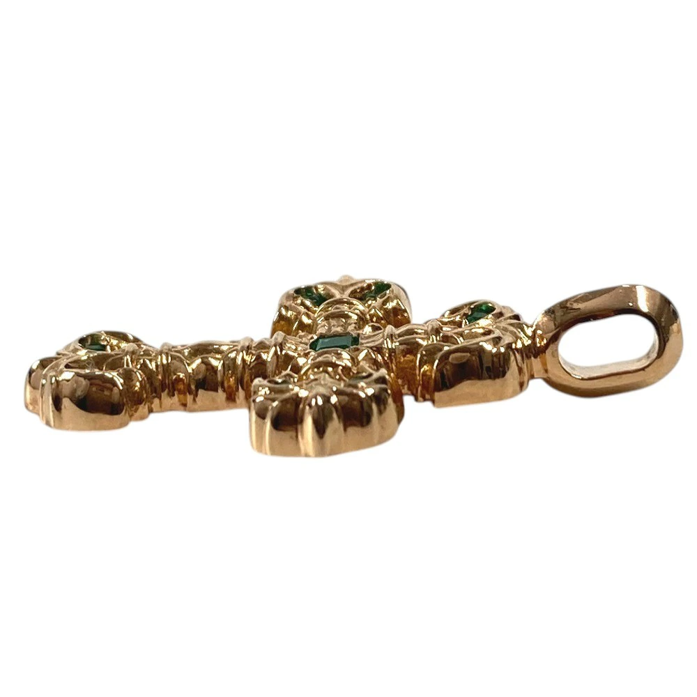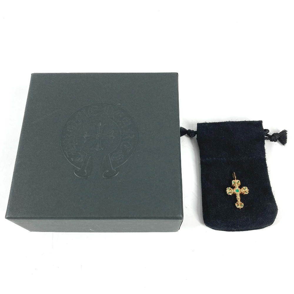 CHROME HEARTS CHARM FILIGREE TINY P EMRLD Tiny Filigree Cross Pave Emerald Pendant Necklace, 22K Gold, Unisex, Pre-owned