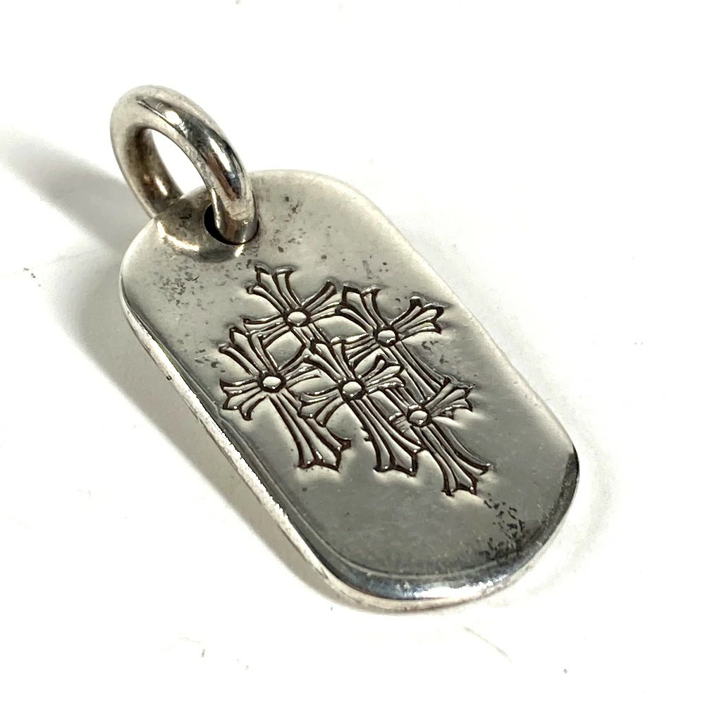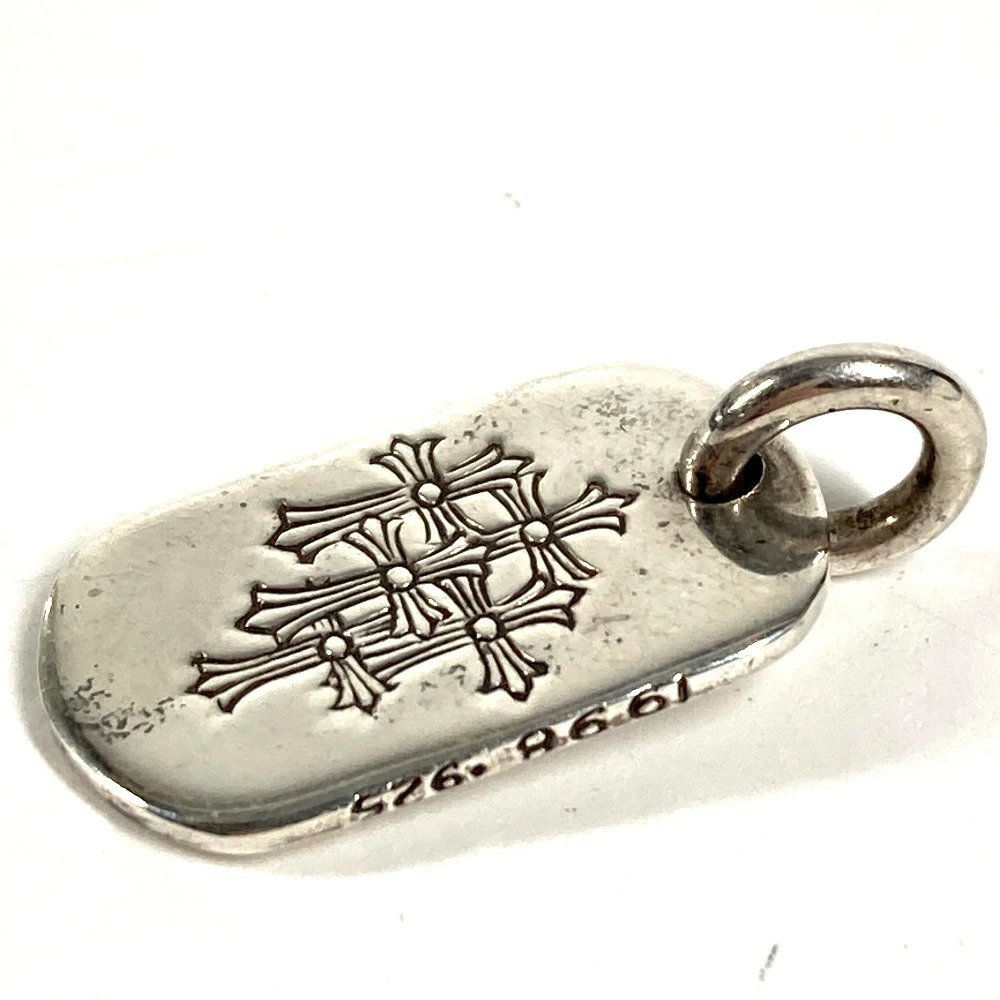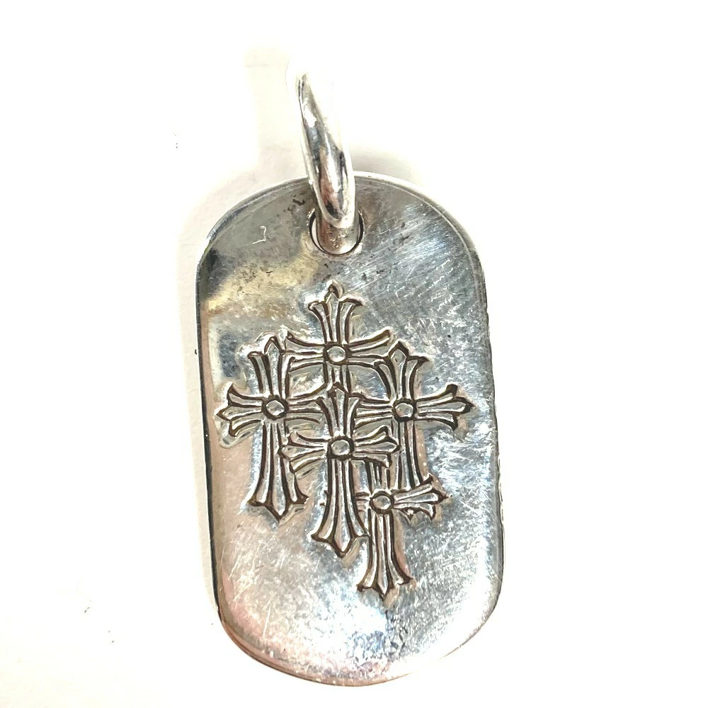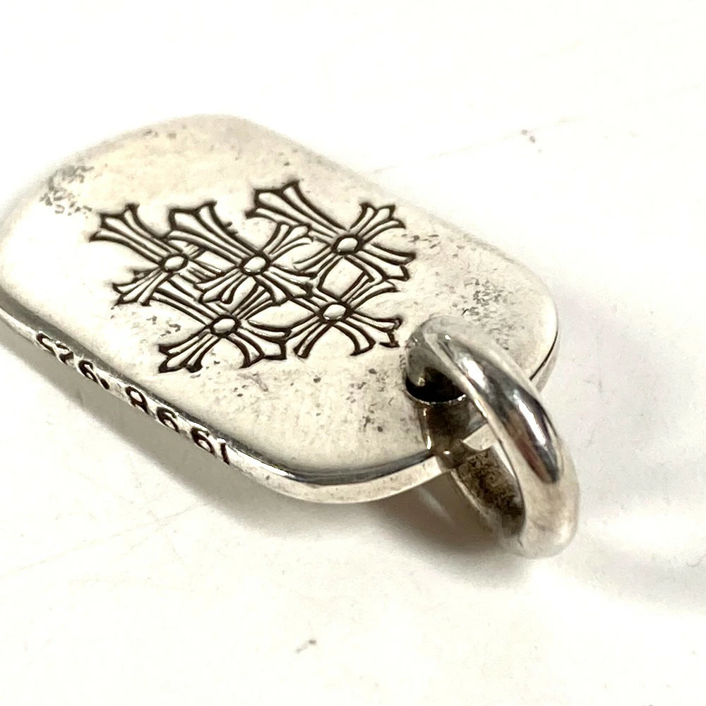Pre-owned Chrome Hearts Cemetery Cross Logo Dog Tag Necklace, SV925 Silver, Unisex.