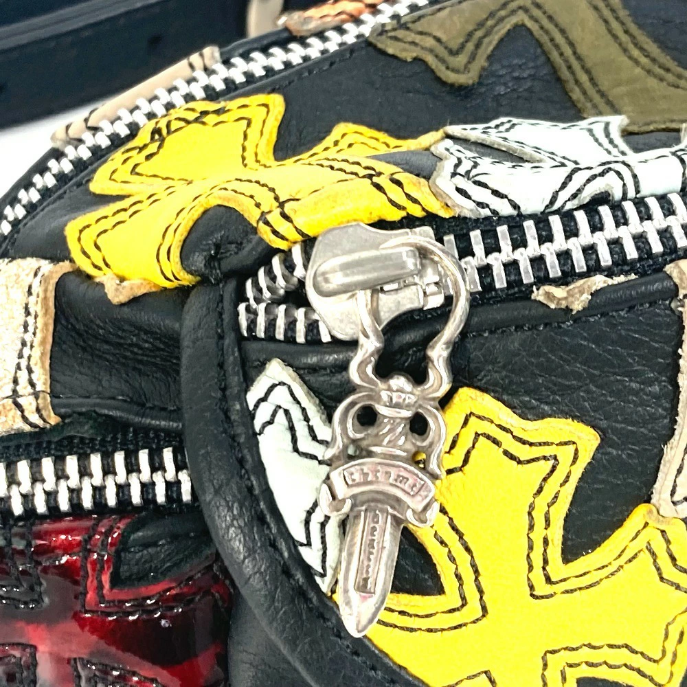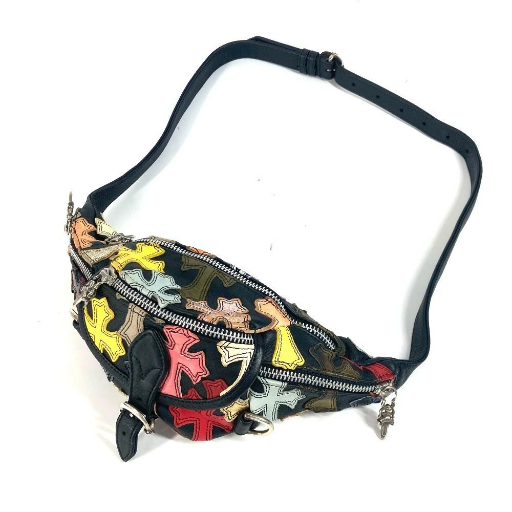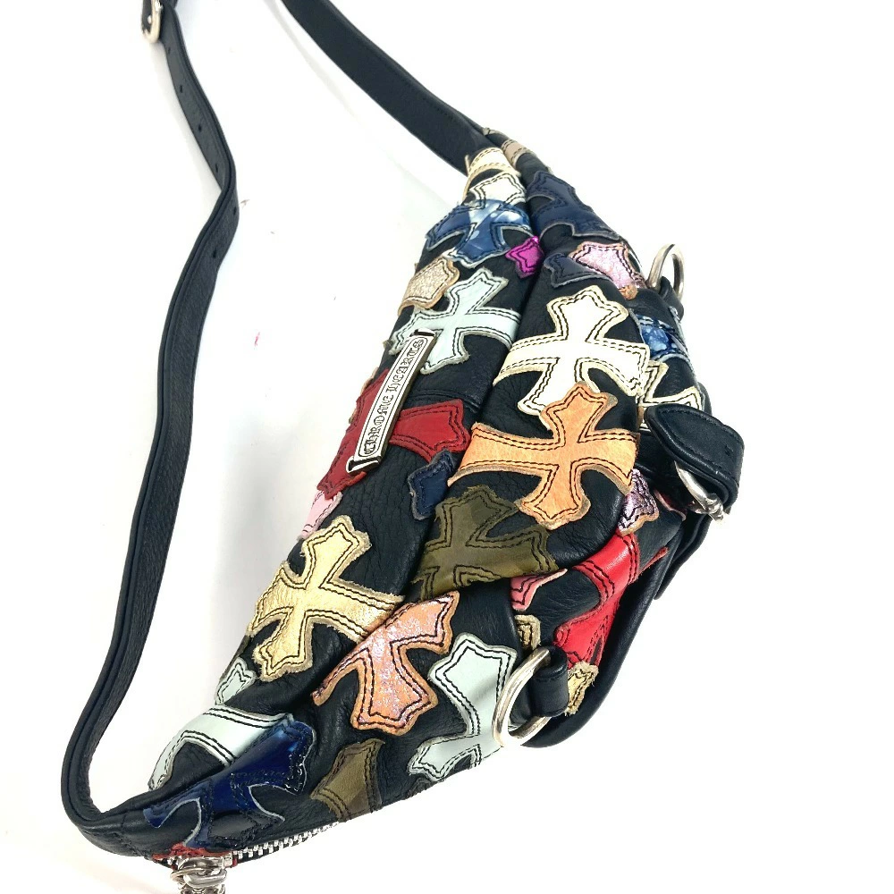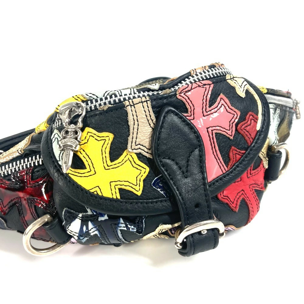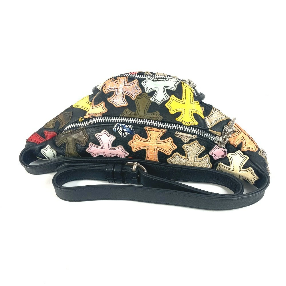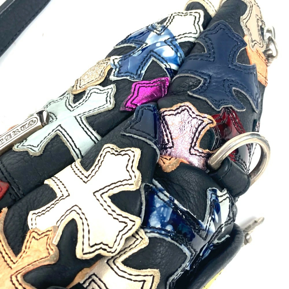 Pre-owned Chrome Hearts SNAT PACK MINI multi-cross patch shoulder/crossbody bag in black leather. Unisex.