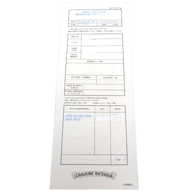 Brand Name: CHROME HEARTS Chrome HeartsProduct Name: *Single Earring SV925 Chain Spike Earring Silver 925Size: Approx. 98.0mm x 4.8mmSize Remarks: Total Weight: 2.7g*Actual MeasurementMaterial: Silver 925Accessories: Invoice (Original)Condition: Used: AEarring…There are some minor scratches, scuffs, and tarnishing/discoloration typical of silver, but it is in good condition.Invoice…Personal information has been blacked out.*If you are concerned about the detailed condition of the accessories, please inquire before ordering. The actual color of the product may differ depending on the device and display you are using.