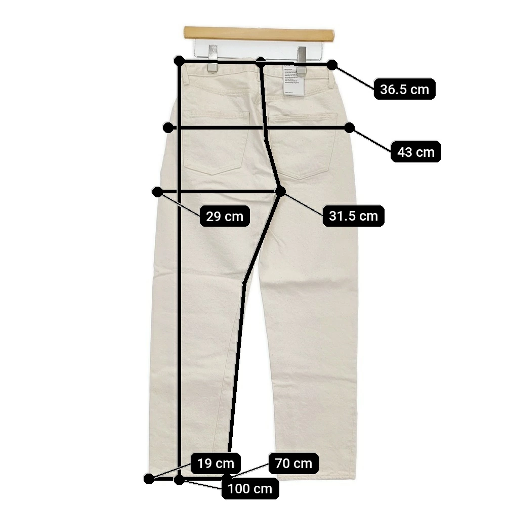 | 実寸サイズ | 総丈:約100cm ウエスト:約36.5cm 股上:約31.5cm 股下:約70cm ヒップ:約43cm ワタリ幅:約29cm 裾幅:約19cm ※記載以外のサイズが合わないことを理由とした返品はできませんので、 記載部分以外で実寸サイズの気になる箇所があれば必ず購入前にご質問ください。 |