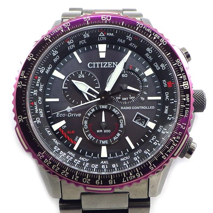 ■商品名CITIZEN 腕時計 プロマスター スカイ E660-A17W209 ブラック文字盤 クロノグラフ スモールセコンド デイデイト ワールドタイム表示 パワーリザーブ表示 アラーム SS ソーラー 【中古】