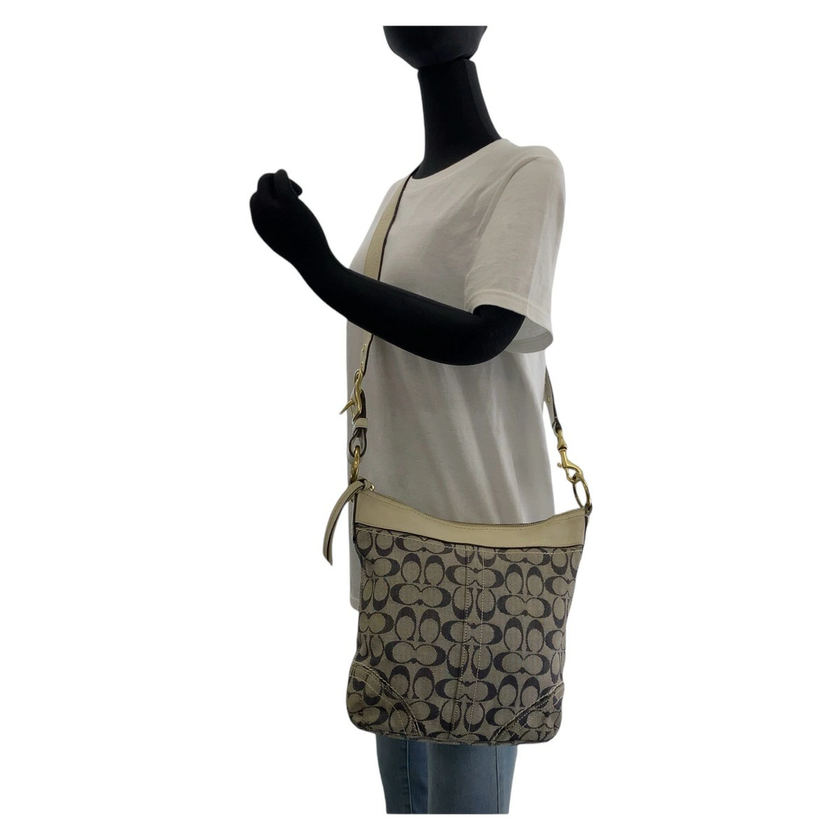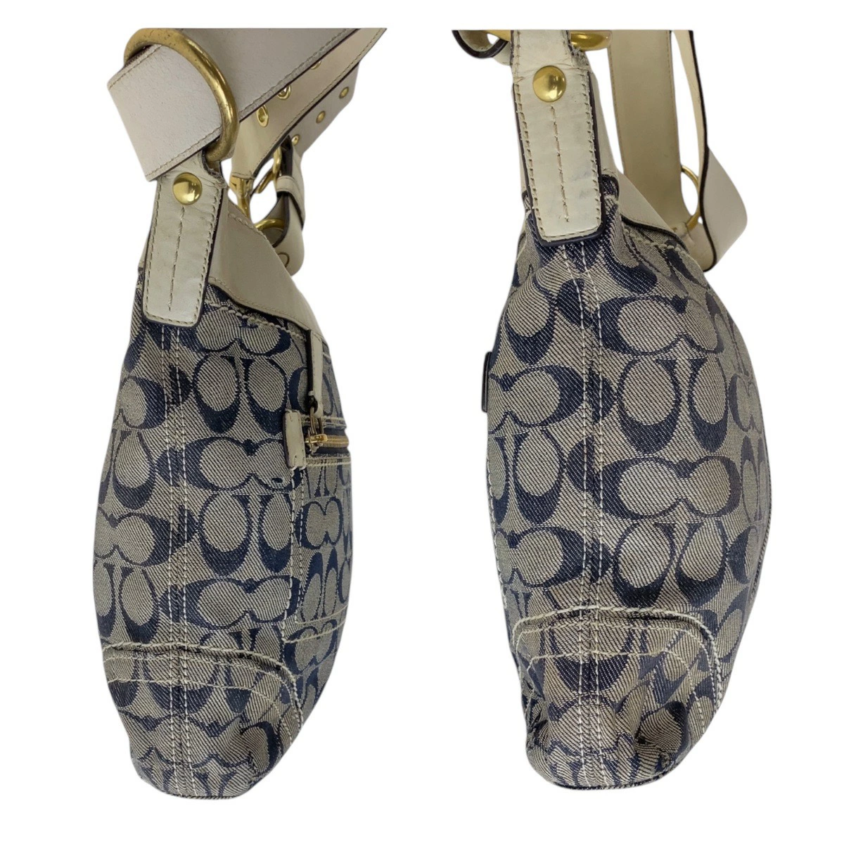 Pre-owned Coach Signature Gray/White Canvas/Leather Messenger Bag with Gold Hardware, Women's, 410007