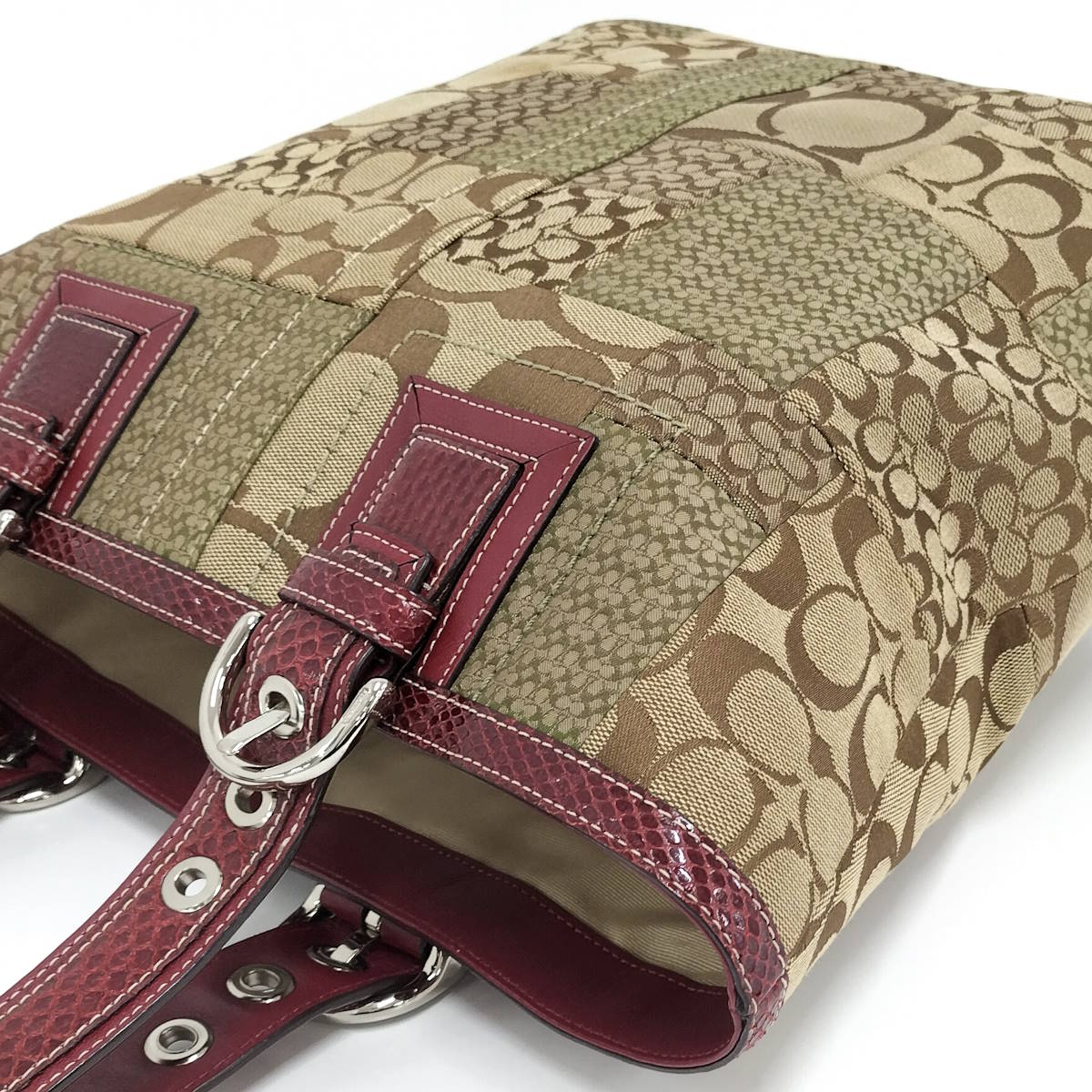 [商品情報]・カラー:ベージュ ボルドー・素材/ライン:レザー キャンバス・サイズ:最大約 W38×H32×D9(cm)・ショルダーの長さ:約40-47(cm)