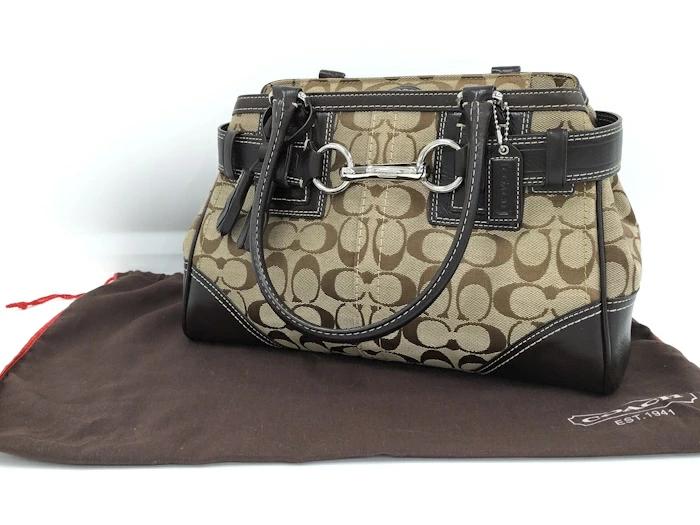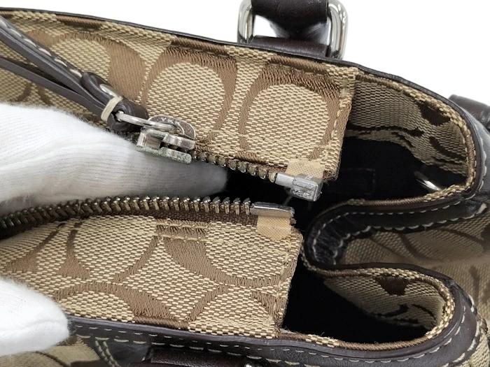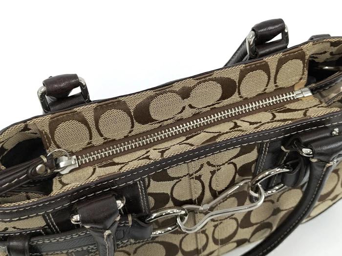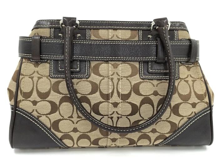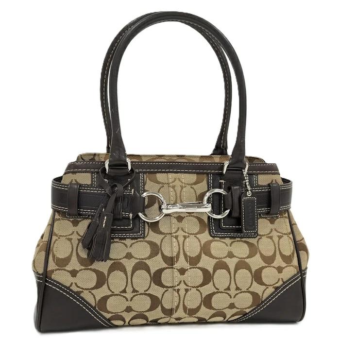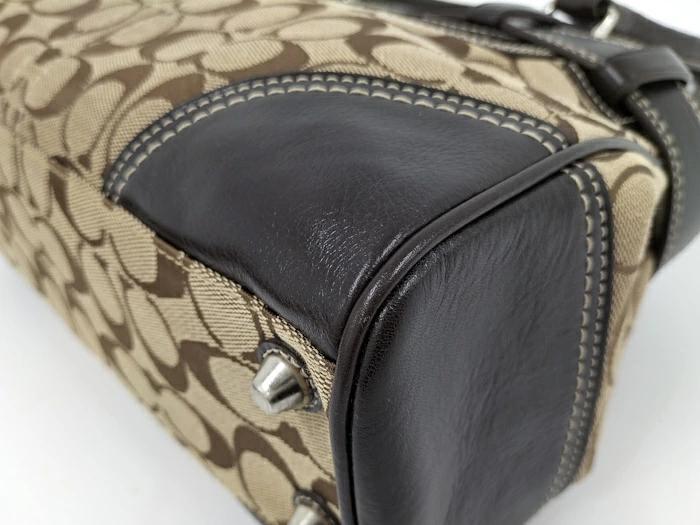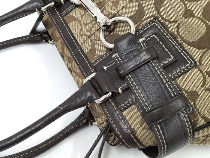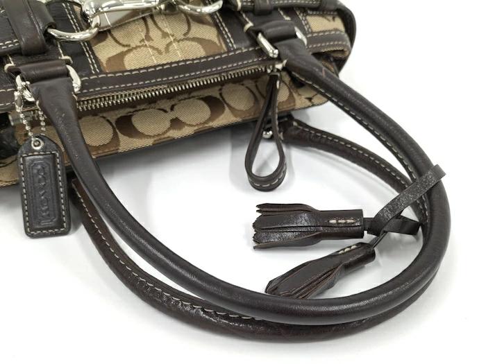 [商品情報]・カラー:ベージュ/ダークブラウン系・素材/ライン:レザー/キャンバス・サイズ:最大約 W31×H21×D8(cm)・ハンドルの長さ:最大約41(cm)※多少の誤差はご了承下さい。