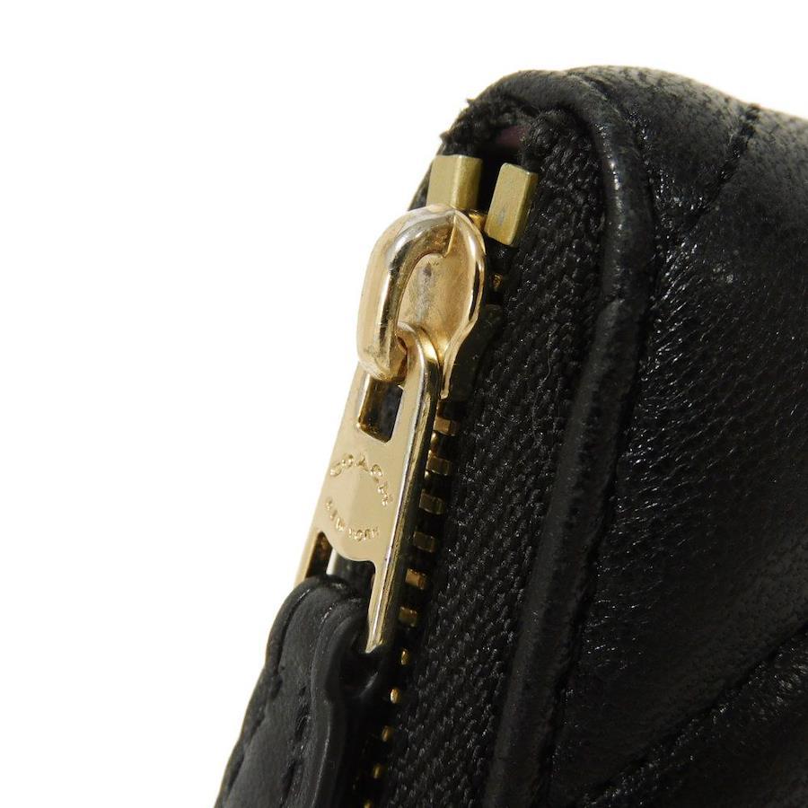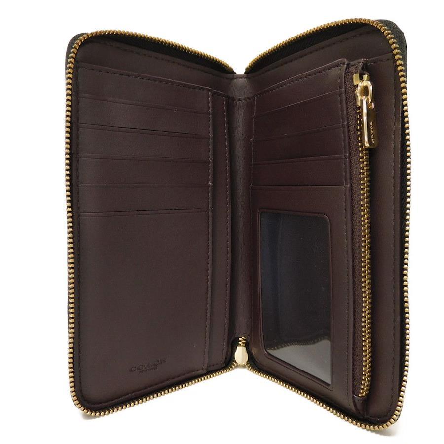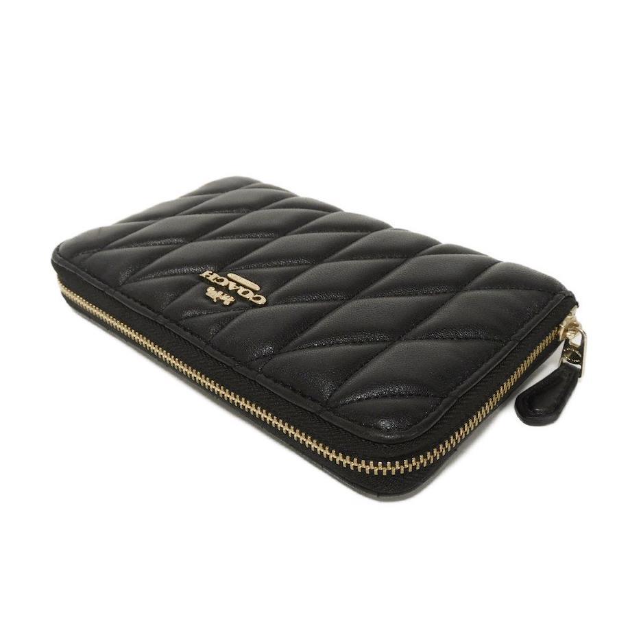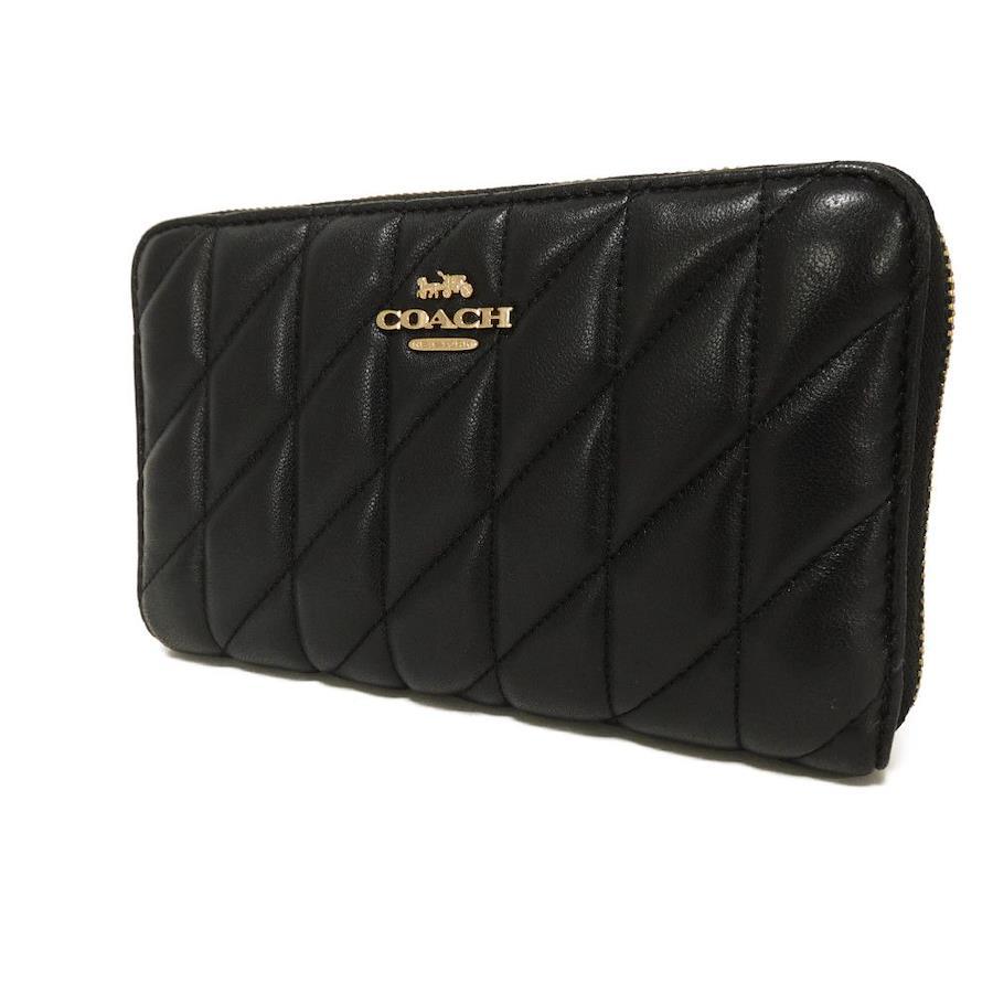 キルティングステッチが施された、ナッパレザーにコーチのロゴメタルがあしらわれた「ミディアム ID ジップ ウォレット」ラウンドファスナー式二つ折り財布です。