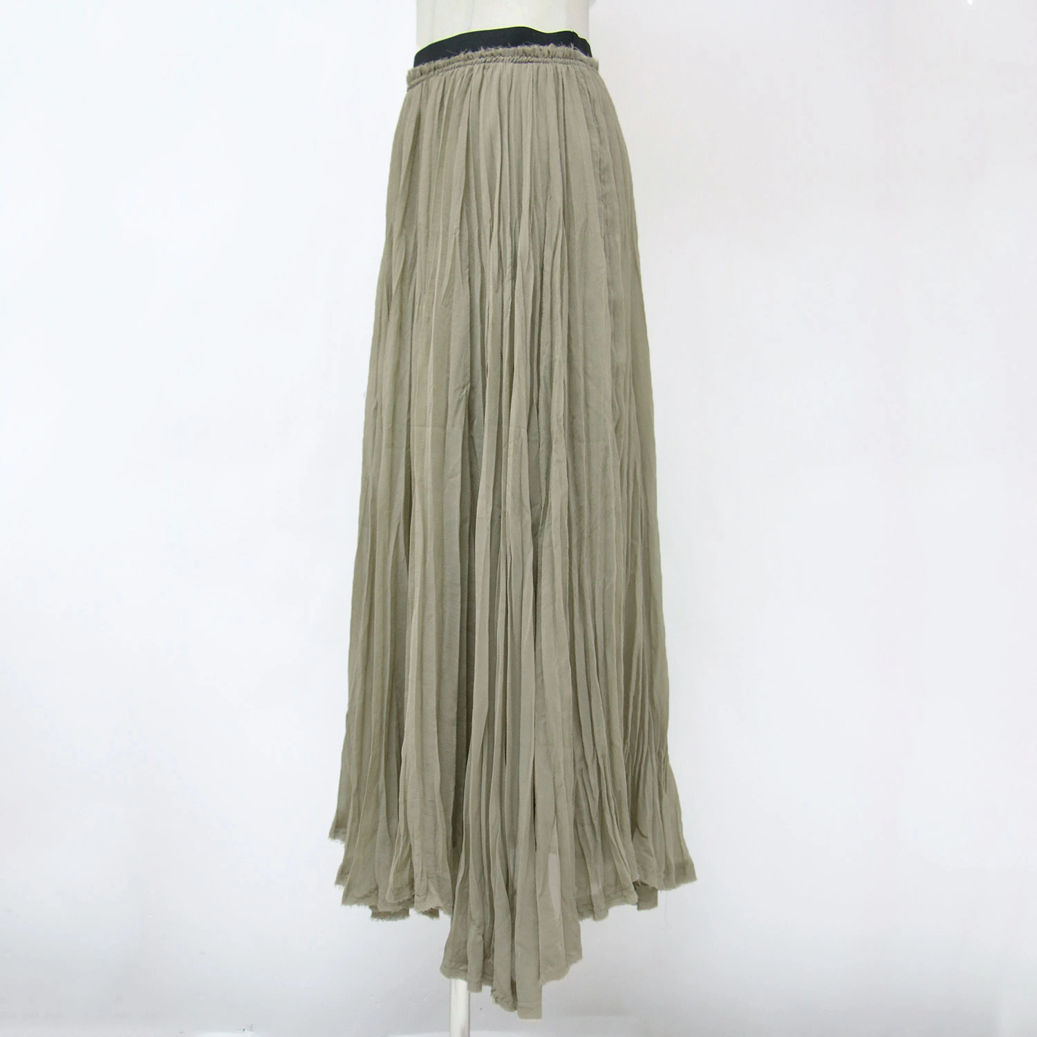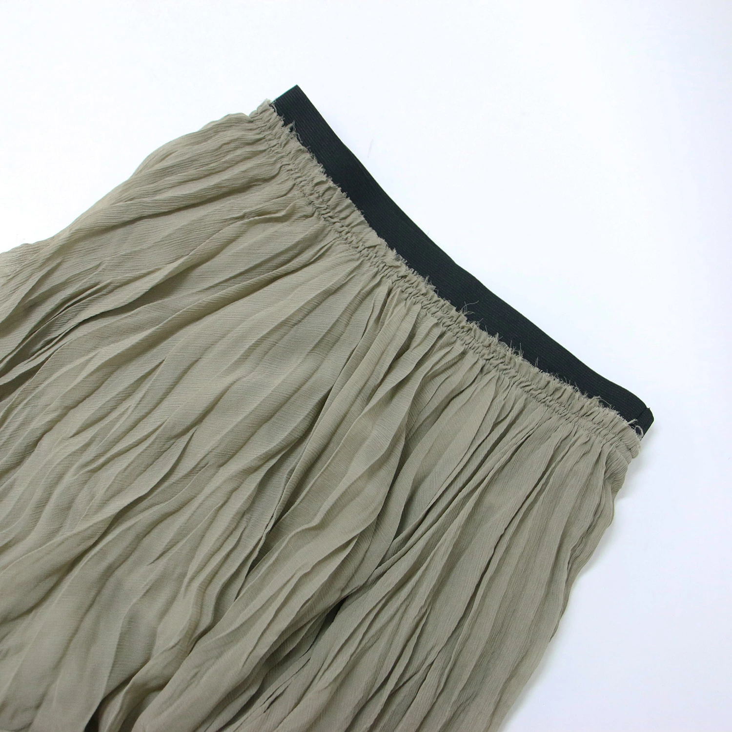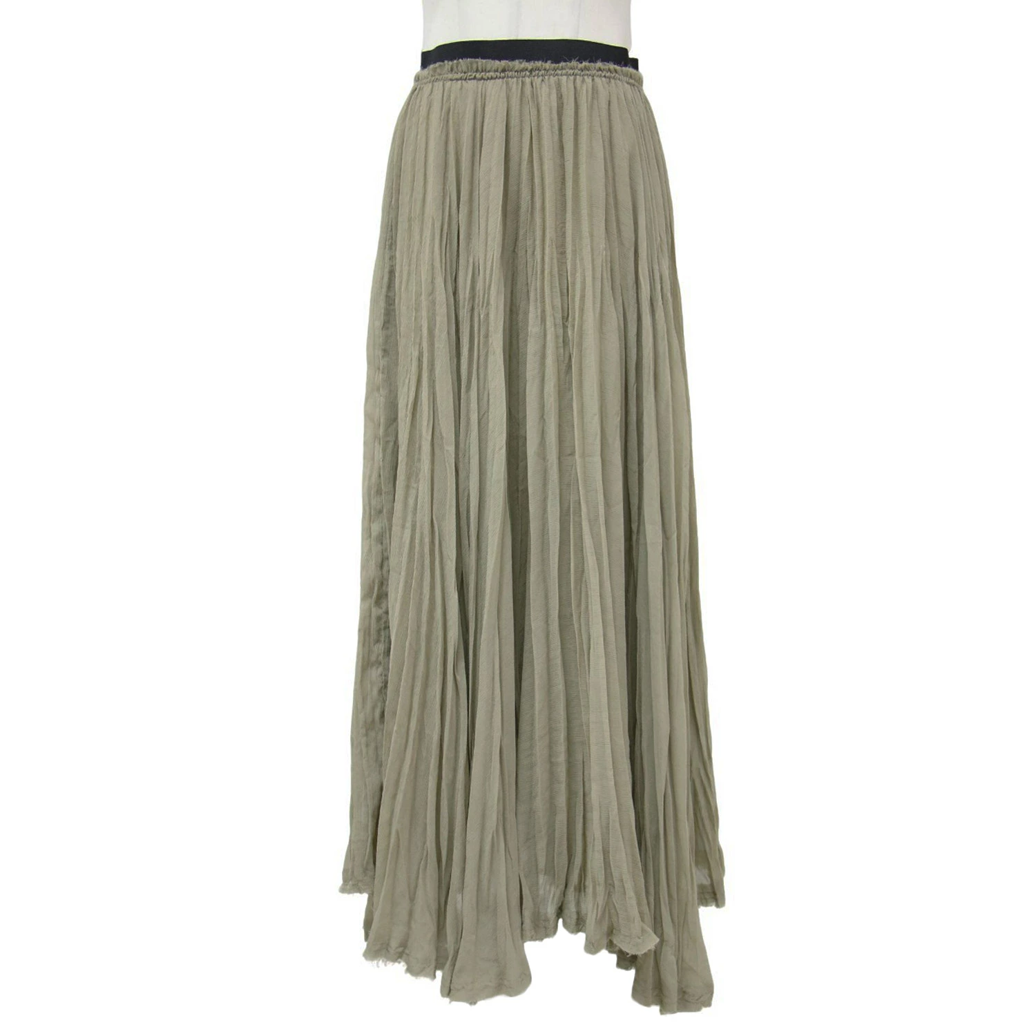 Col Pierrot Long Pleated Skirt, Beige, Free Size, Asymmetrical, Elastic Waist, Made in Japan, Women's, Pre-owned, K4618