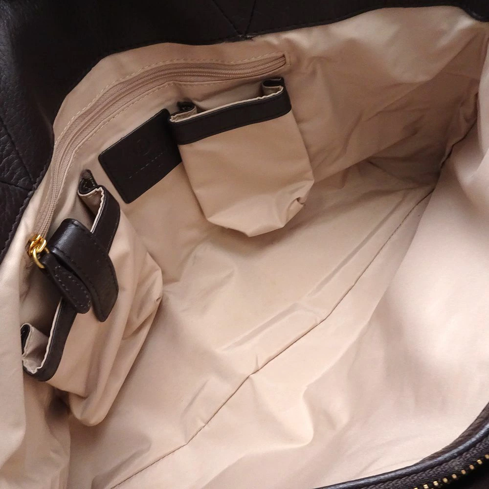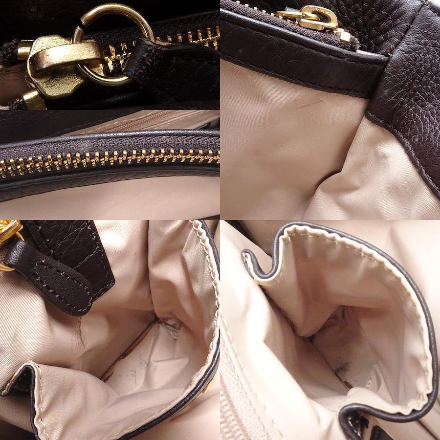 [外・表面] スレ / キズ [外・ハンドル] キズ / スレ / ペン跡 [外・形状] 型崩れ / 凹み [外・角] キズ / スレ [外・縁] キズ [外側] ハンドル根元のレザー部分に糸切れ、ファスナー引き手のレザー所々コバ剥がれ [ポケット] 糸ほつれ [金具部分] キズ [内側] 汚れ / 一部ほつれ / ペン跡 / シミ / 全体的に使用感あり / 内側のミニポケットの中に接着シミ・ペン跡・汚れ [ファスナー周り] キズ / 汚れ / 剥がれ