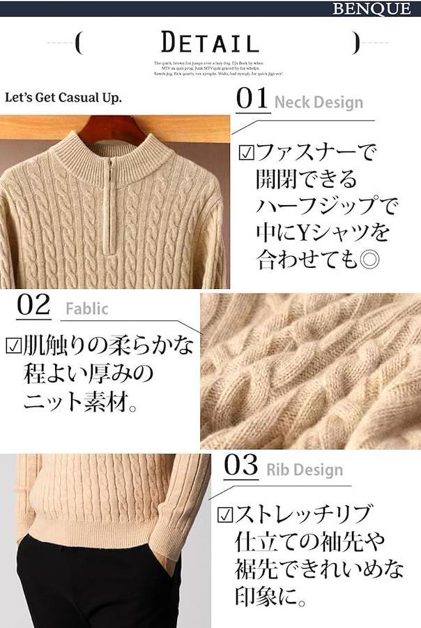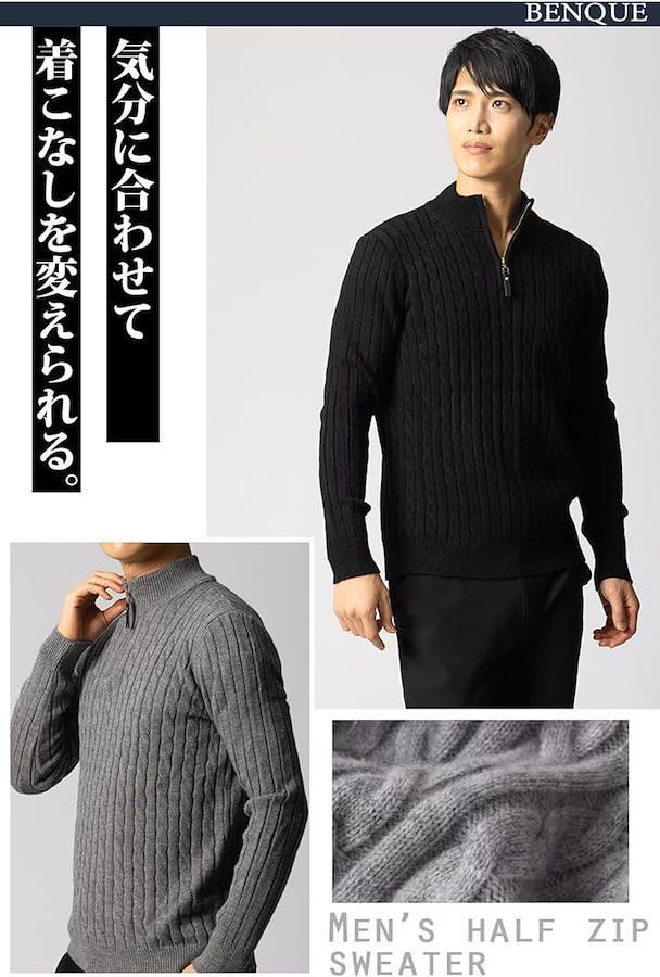 ハーフジップの開け閉めで、気分に合わせて着こなしを変えられてアレンジもできる、シンプルでお洒落なデイリー使いにもおすすめのハーフジップセーターです。