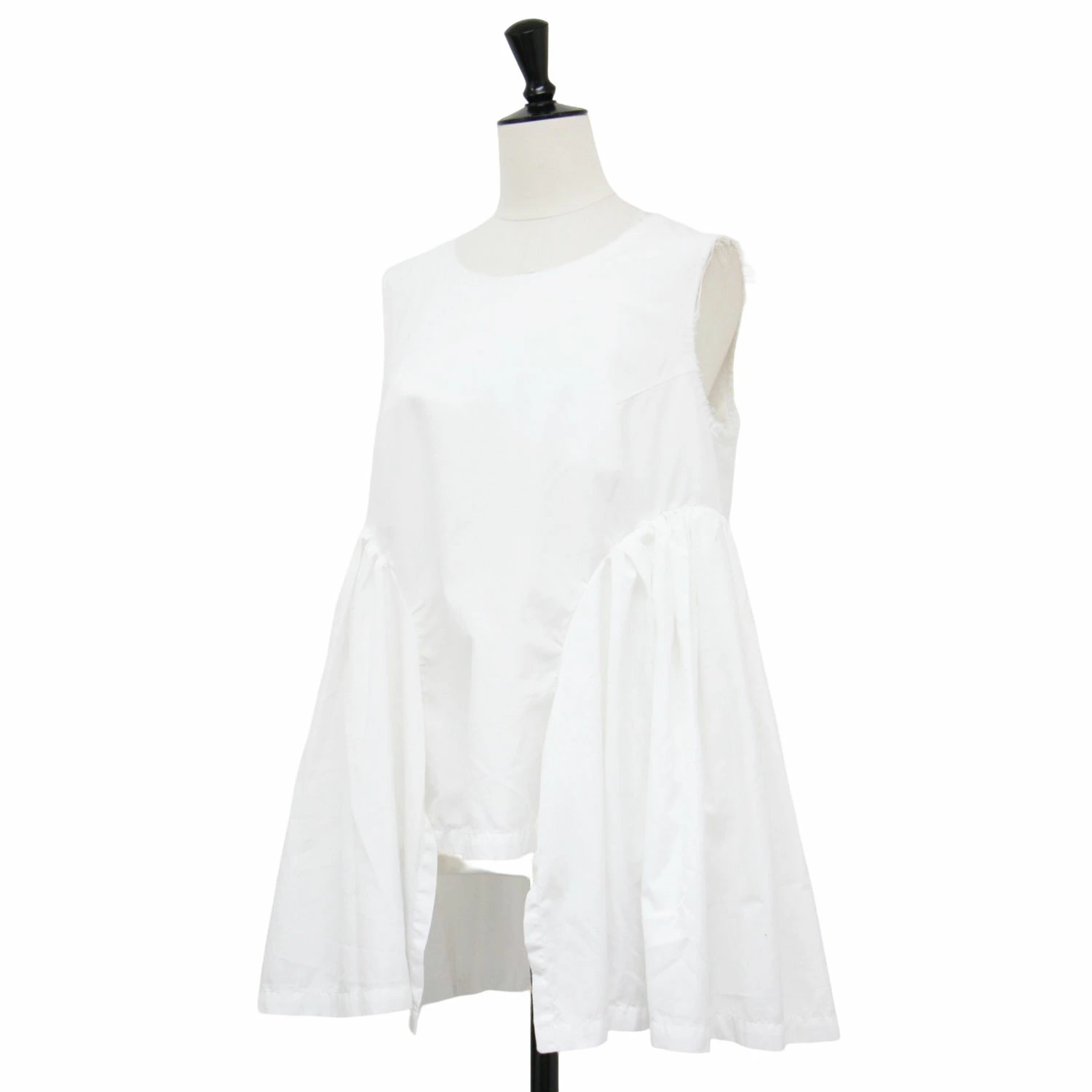 | 商品説明 | ◆ランダムギャザーが、脇下あたりから施され、裾に向かって緩やかに広がるAラインのフォルムが特徴 ◆ネックライン、アームホールはカットオフ仕上げとなっており、COMME des GARCONSらしいアバンギャルドでラフな印象 ◆細身のパンツやシンプルなスカートと合わせることで、ブラウスのボリュームが引き立ち、バランスの取れたモードな着こなしに◎