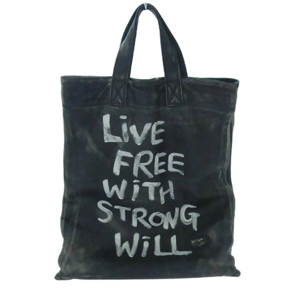 Pre-owned COMME des GARÇONS KO-K001 Lewis Leathers vintage-finished LIVE FREE WITH STRONG WILL leather tote bag for men.