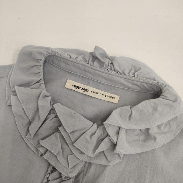 Pre-owned ADIEU TRISTESSE ruffled button-down blouse in light blue for women. Product code: 5-0807M.