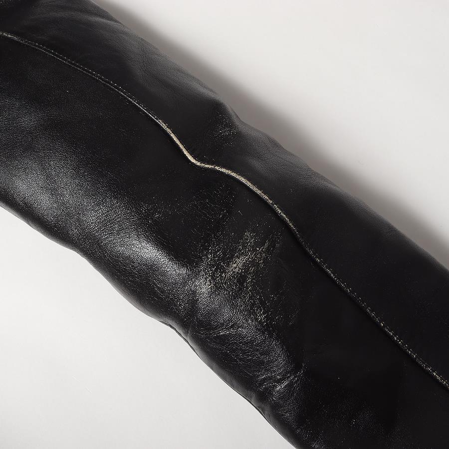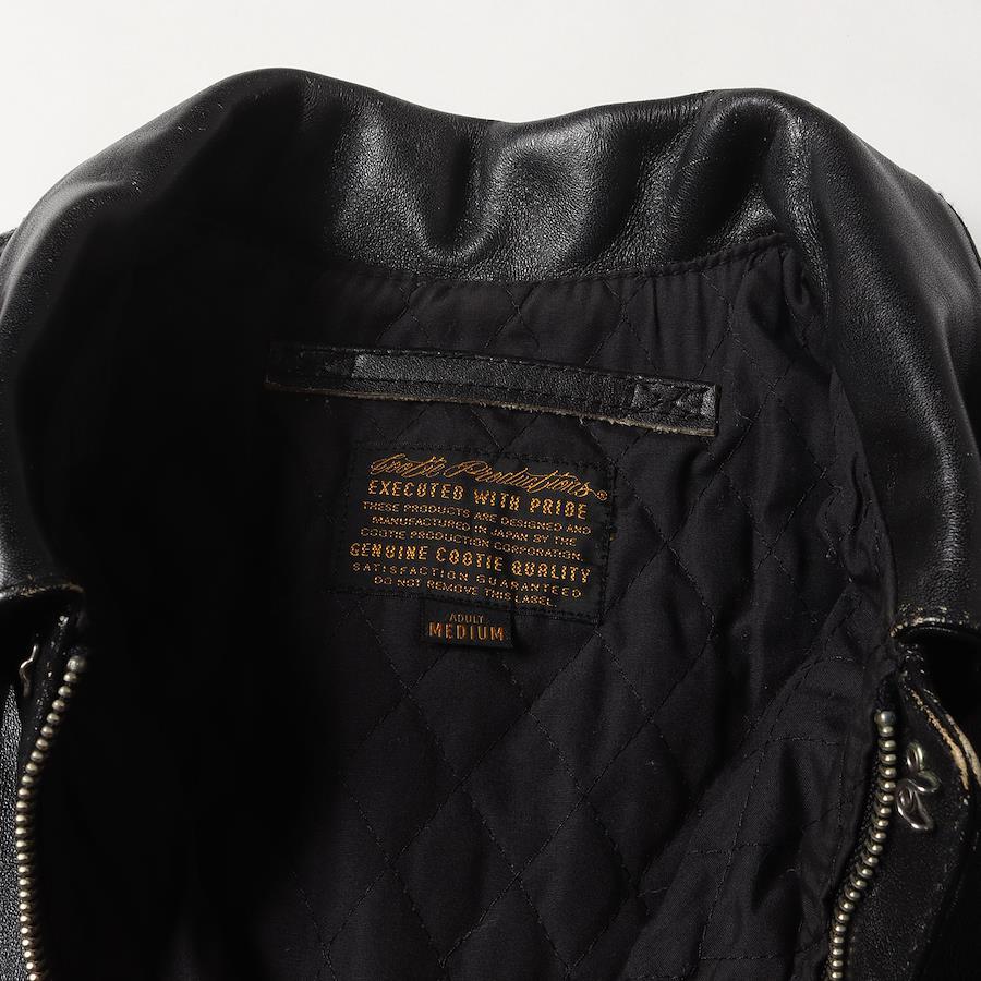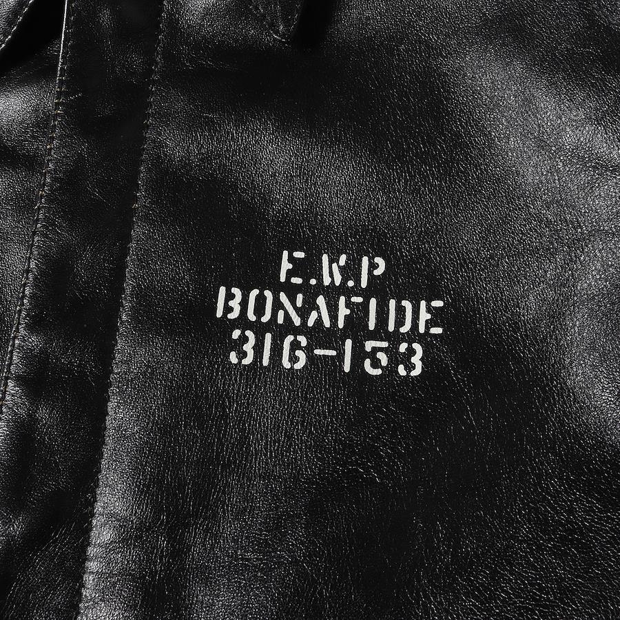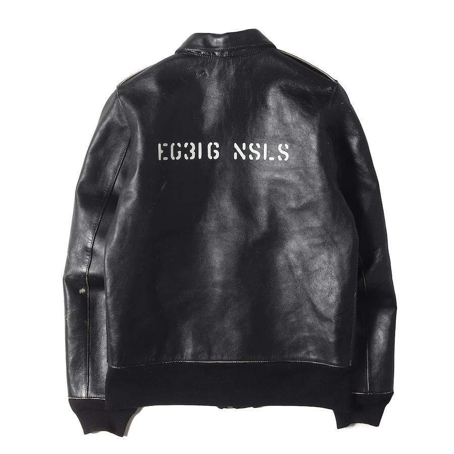 | 商品説明 | ホースハイドレザーを使用した、裏地キルティングのA-2フライトジャケットです。両面にステンシル調プリントがデザインされております。 |