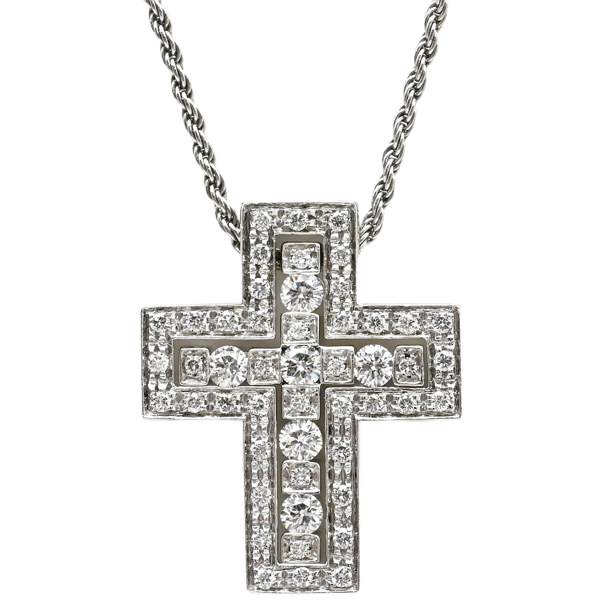Damiani Belle Epoque Necklace, K18WG Diamond White Gold Pendant, Au750 18K Gold Cross - Men's, Women's, Unisex, Classic, Popular, Excellent Condition, Pre-ownedBrand: DamianiModel Number: -FeaturesColor: White GoldMaterial: K18WG / DiamondSize: Total Length: 43.5cmTop: 18.5mm W x 22.5mm HNote: Top size is measured with two crosses stacked.Stones: DiamondWeight: 10.4gAccessories: NoneRank: A [Overall Condition Details]There is minor damage due to use and storage, but the item is in relatively good condition. See images and comments.[Condition Details] Pre-owned, Excellent ConditionThere are minor scratches, scuffs, and tarnish.