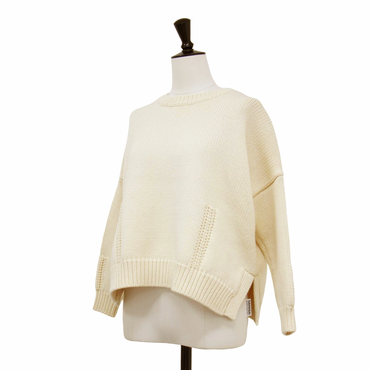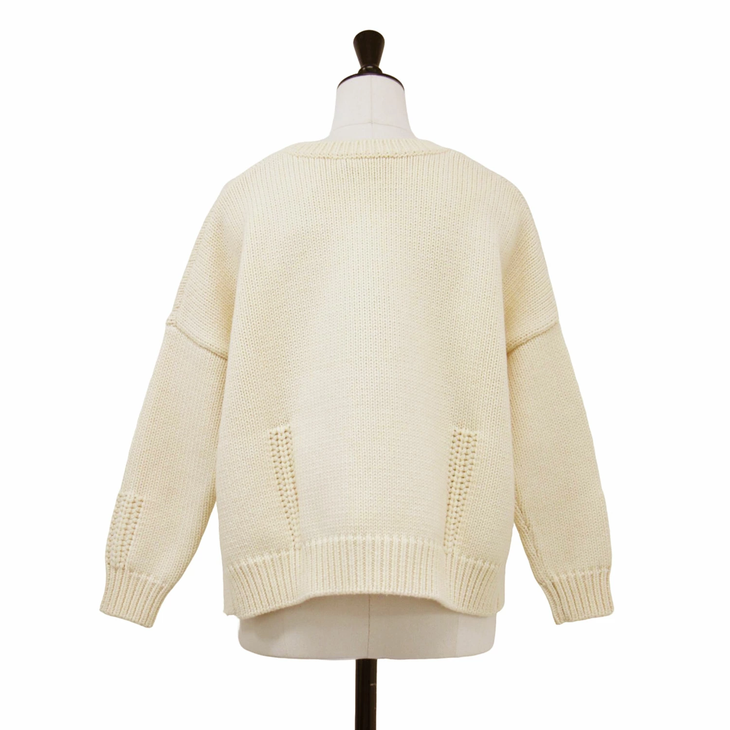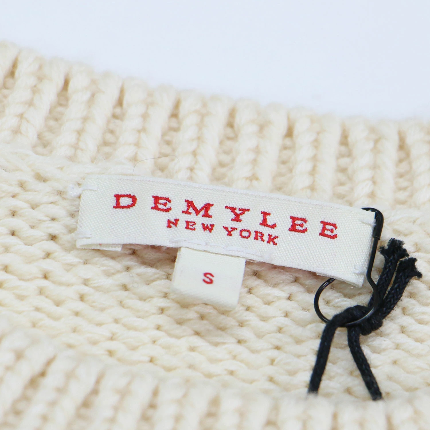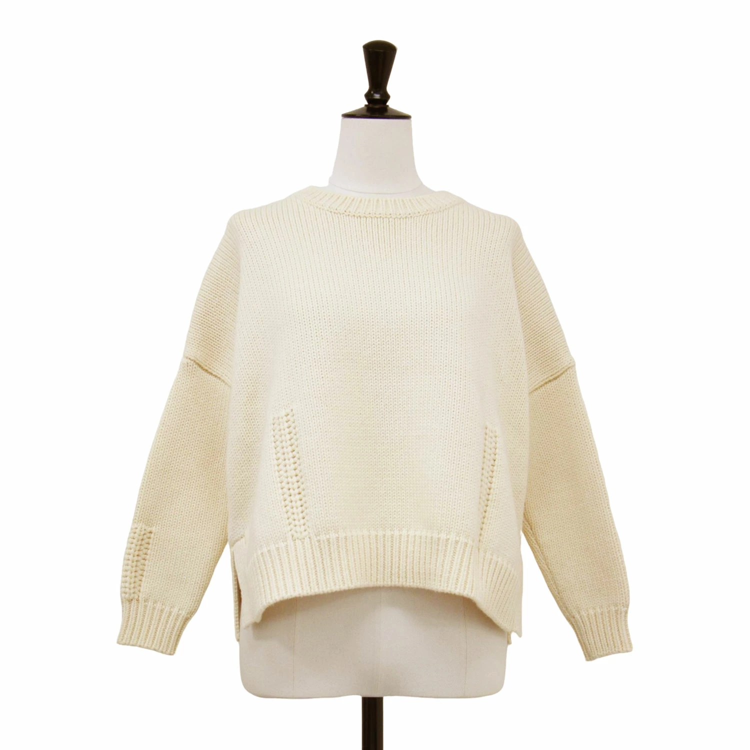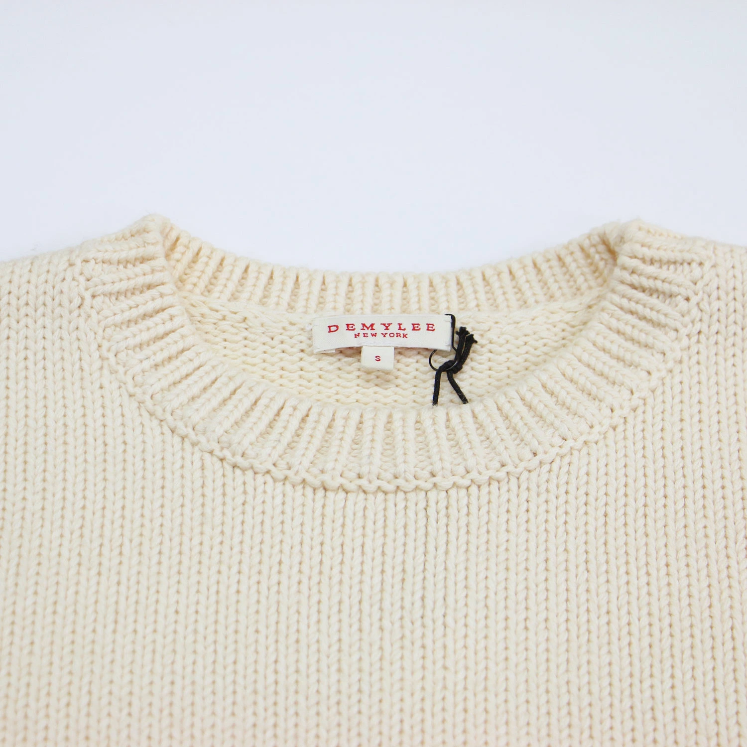 DEMYLEE Off-White Knit Sweater, Size Small, Cotton/Wool Crew Neck, Pullover, Short Length, Long Sleeves, Wide Fit, Low Gauge, Women's, Pre-owned, K4615