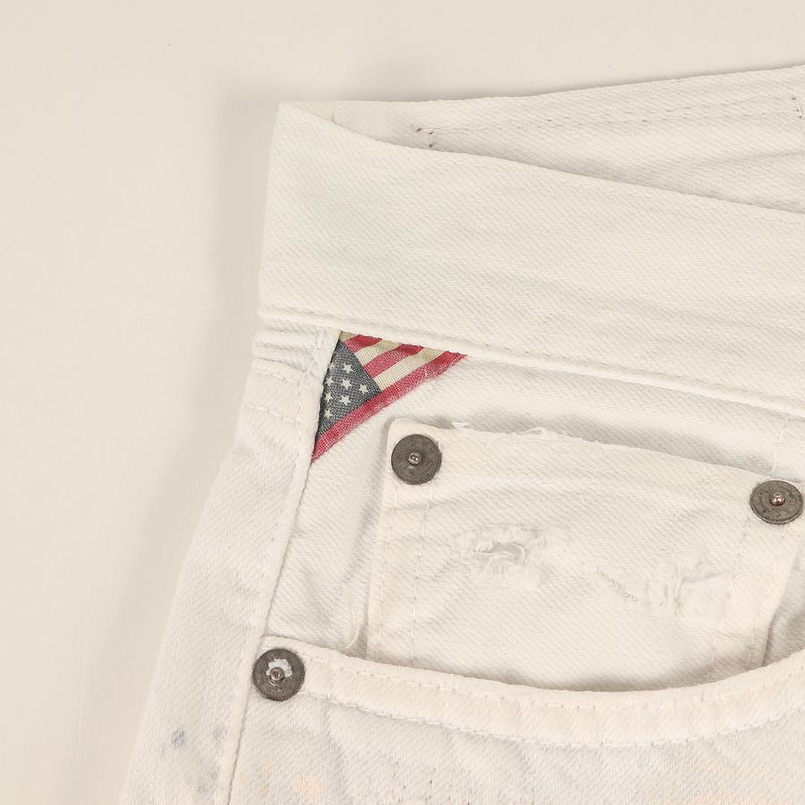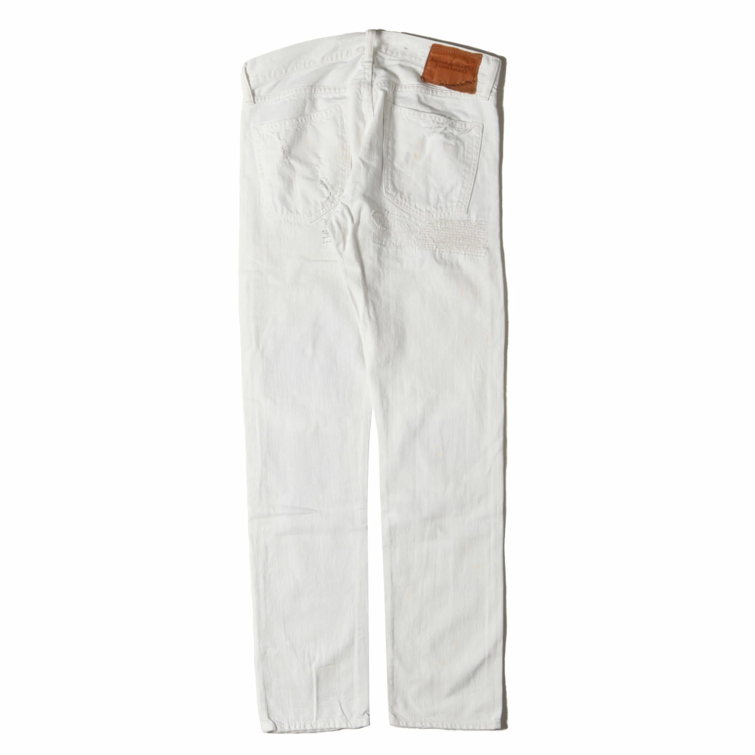 | 商品説明 | ・ホワイトデニム生地 ・クラッシュリペア、ダメージ、ペンキ、汚し加工 ・ボタンフライ ・スリムストレートシルエット |
