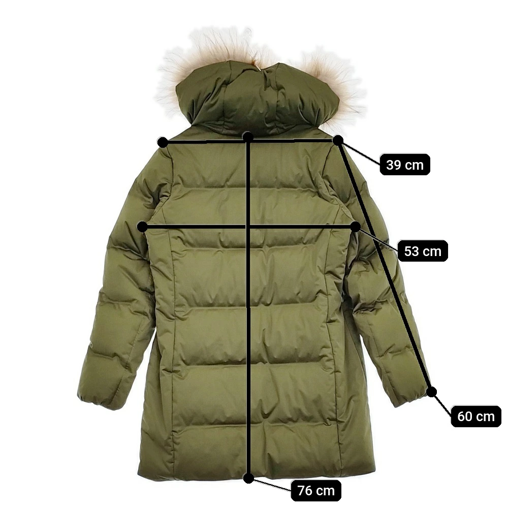 | 品質表示 | 表地 本体:ポリエステル100% フードファー:チャイニーズラクーン 裏地:ポリエステル 中綿:ダウン90%、フェザー10% フード口・脇身頃・袖下:ポリエステル100% |