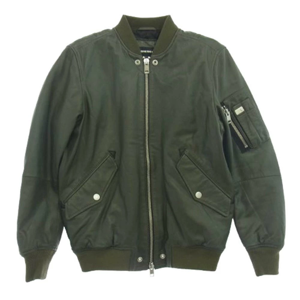 DIESEL L-PARKER Leather MA-1 Bomber Jacket, Green, Men's [Used]