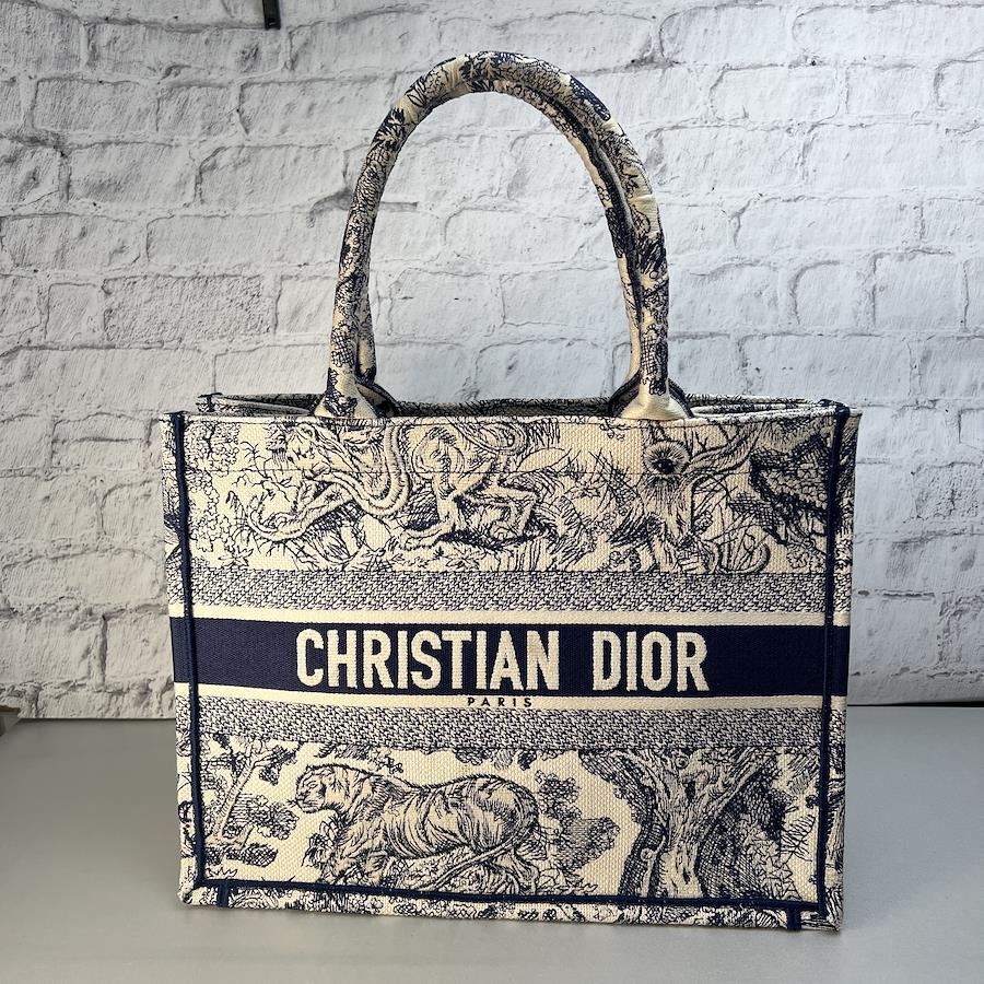 【アイテム】良品 ブックトート ディオールミディアム キャンバス ハンドバッグ ブルー A-12523