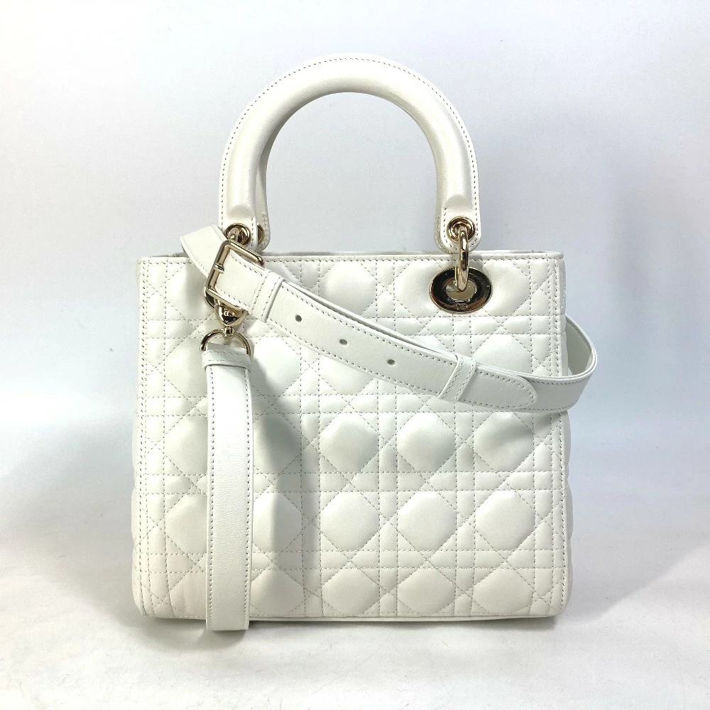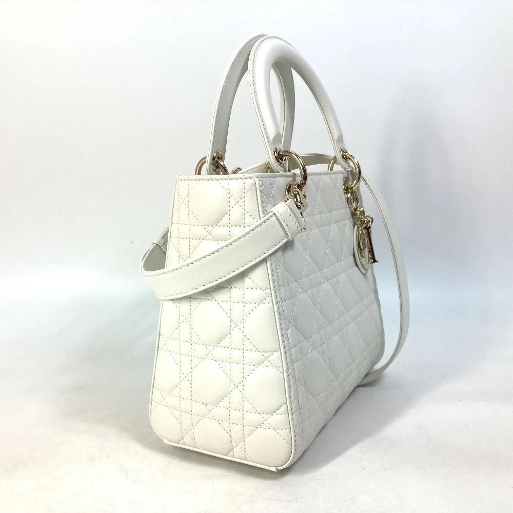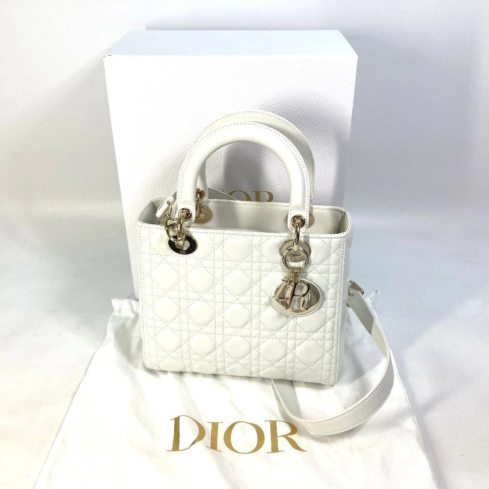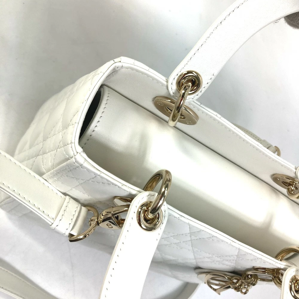 Dior M0565ONGE_M030 LADY DIOR Cannage Medium 2-Way Shoulder Bag/Crossbody/Handbag in White Lambskin. Unused. Pre-owned.